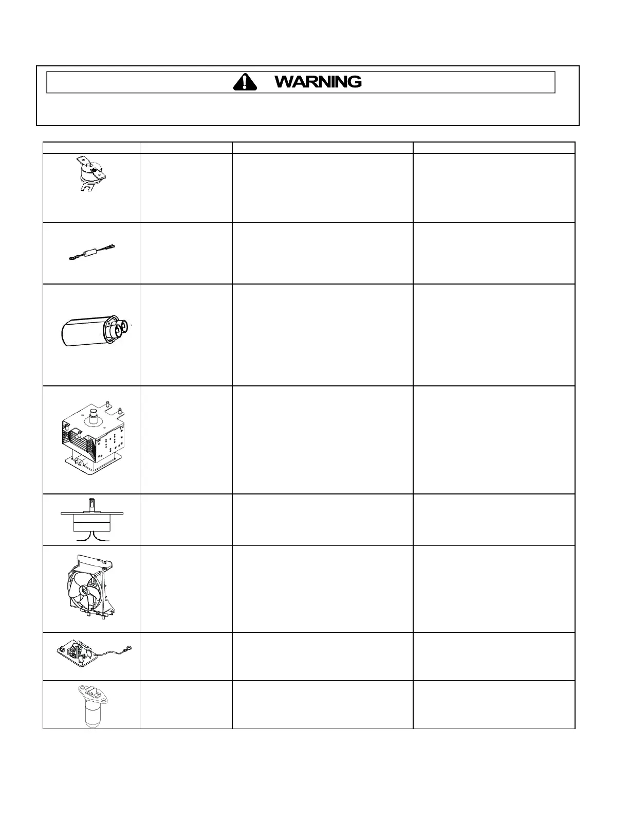 To avoid risk of electrical shock, personal injury or death, disconnect power to oven and discharge capacitor