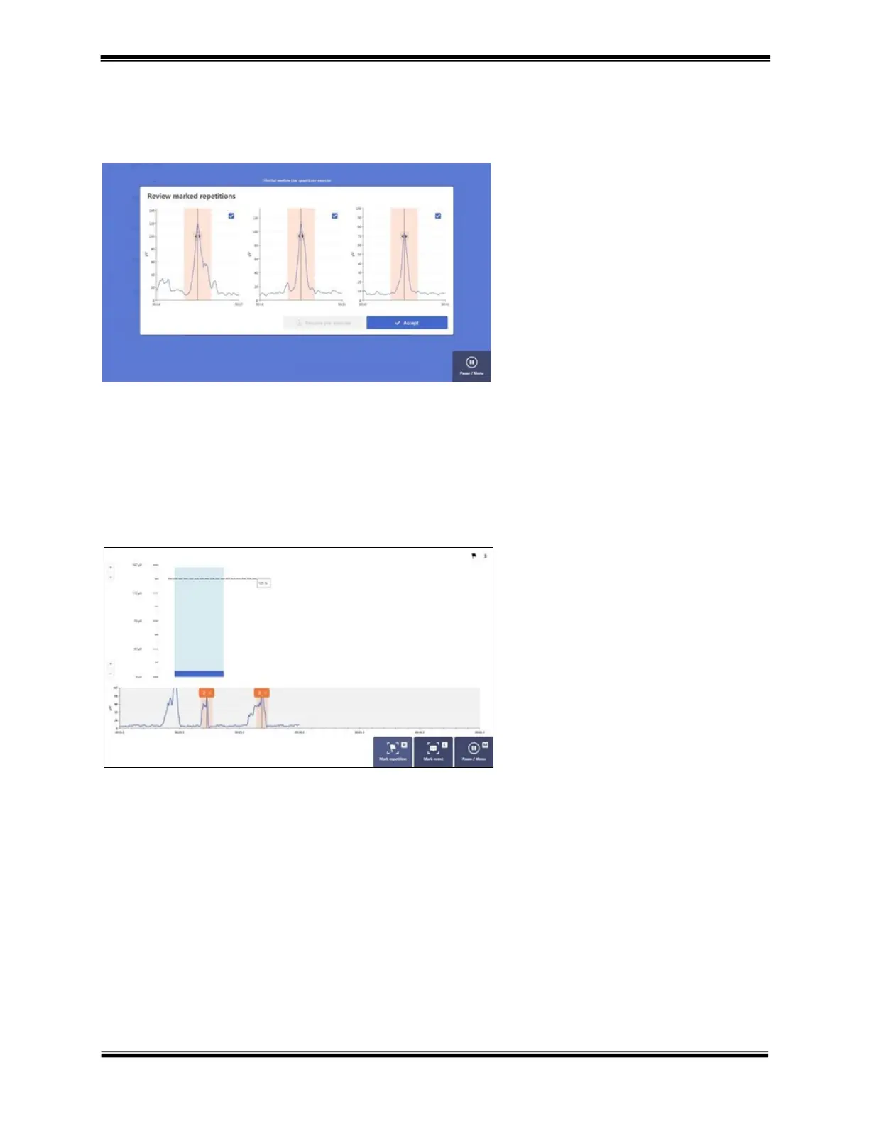 The exercise command boxes, Mark repetition, Mark event and Pause will always be located in the lower right of