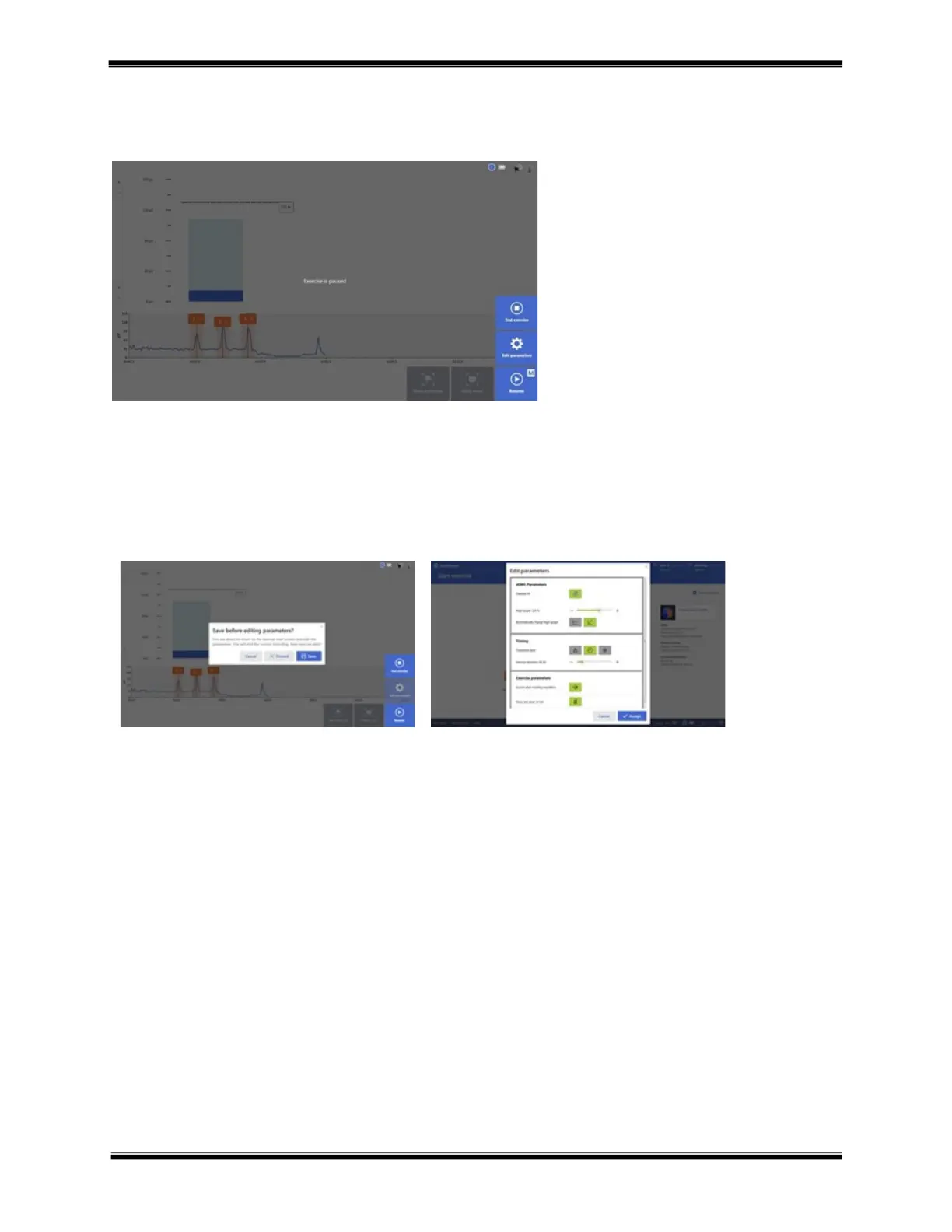 parameter screen to edit the selected exercise. After new parameters are set, advance to the exercise start screen