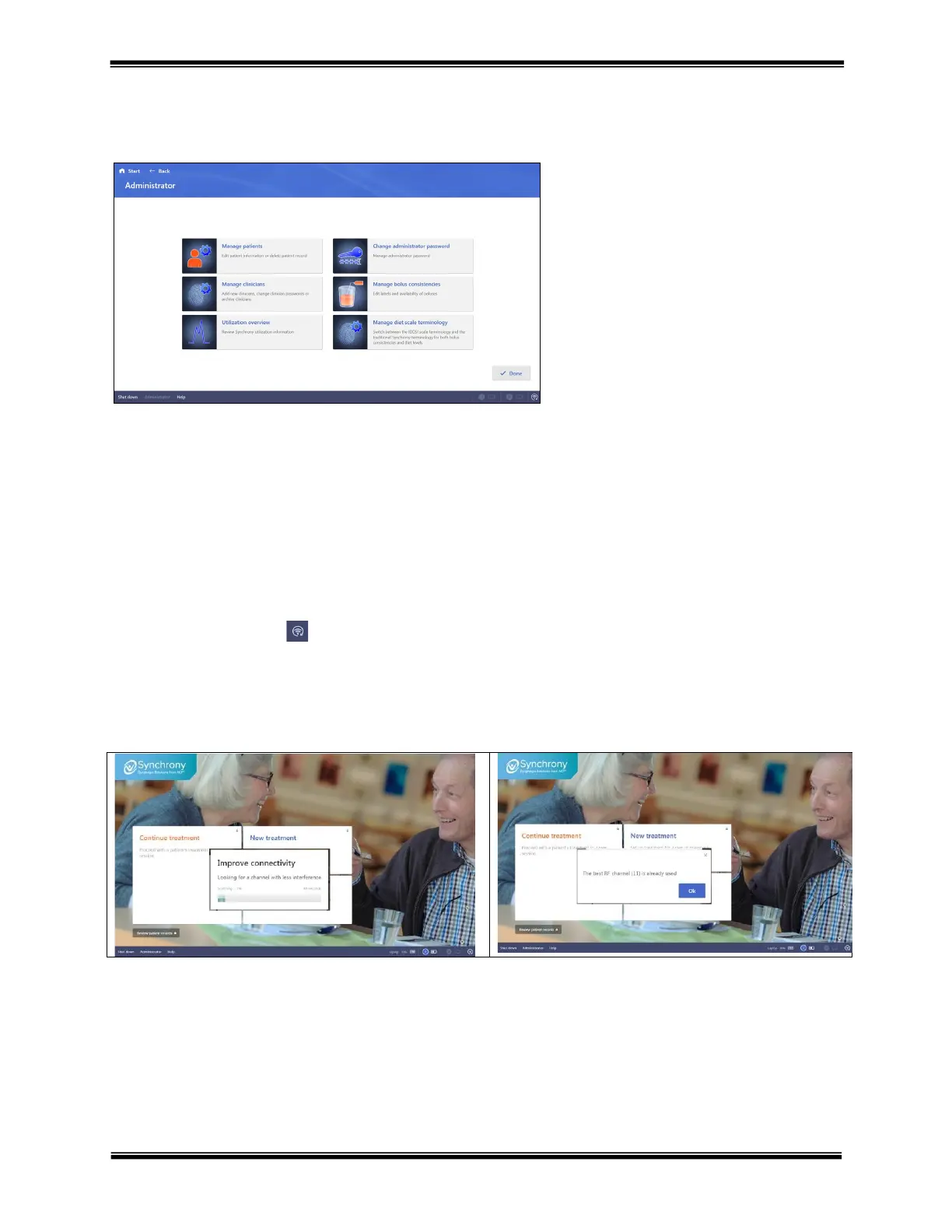 The Administrator control panel provides multiple administrative tools to clinically manage the Synchrony system.