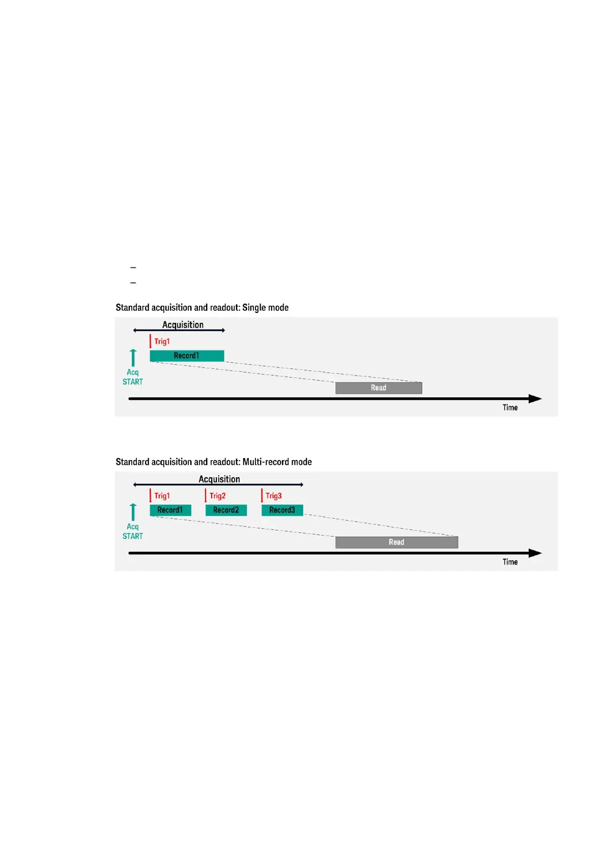 As presented in the Digitizer acquisition mode (page 18), the two standard acquisition and readout