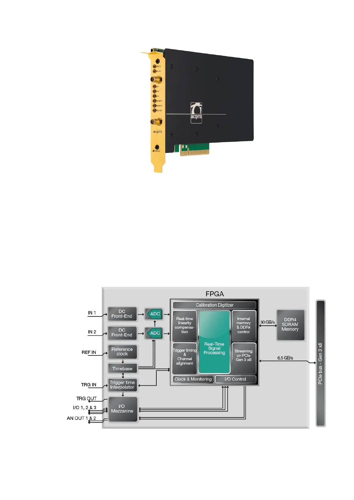 the host computer at up to 6.5 GB/s. This ADC card occupies a single PCIe slot, offering high