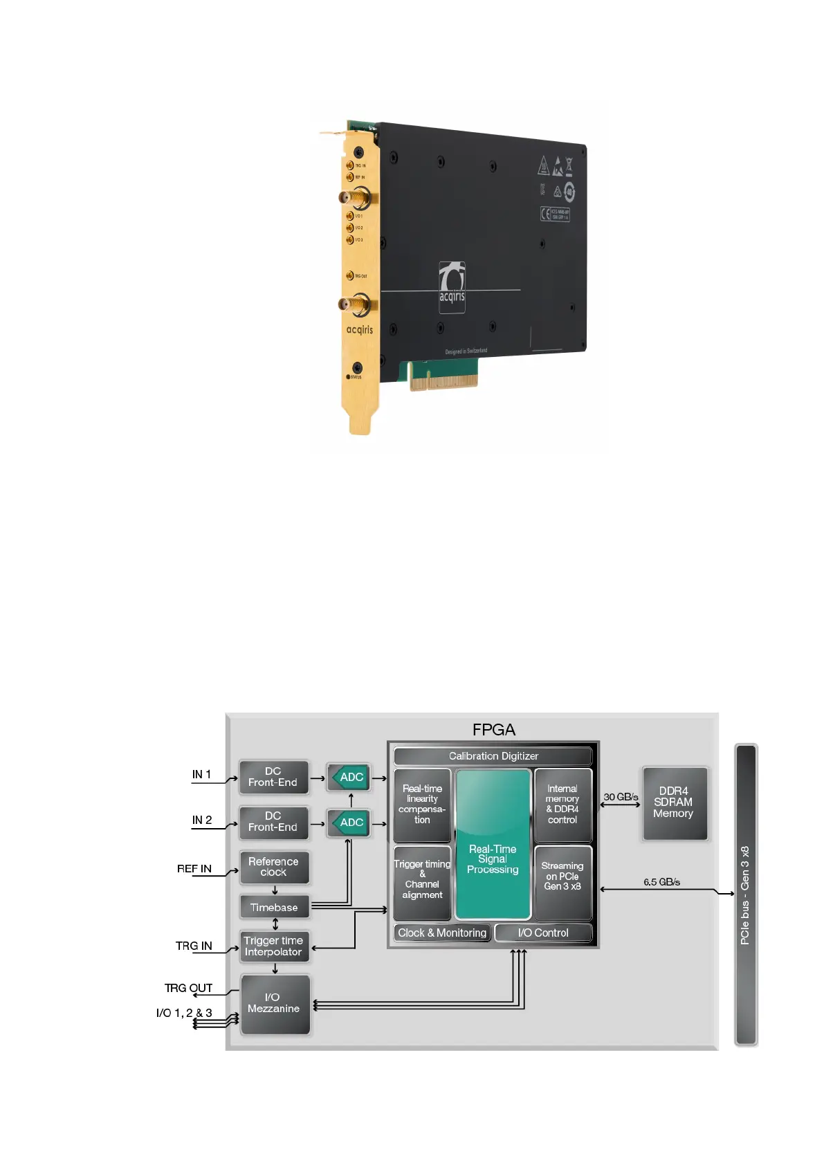 the host computer at up to 6.5 GB/s. This ADC card occupies a single PCIe slot, offering high