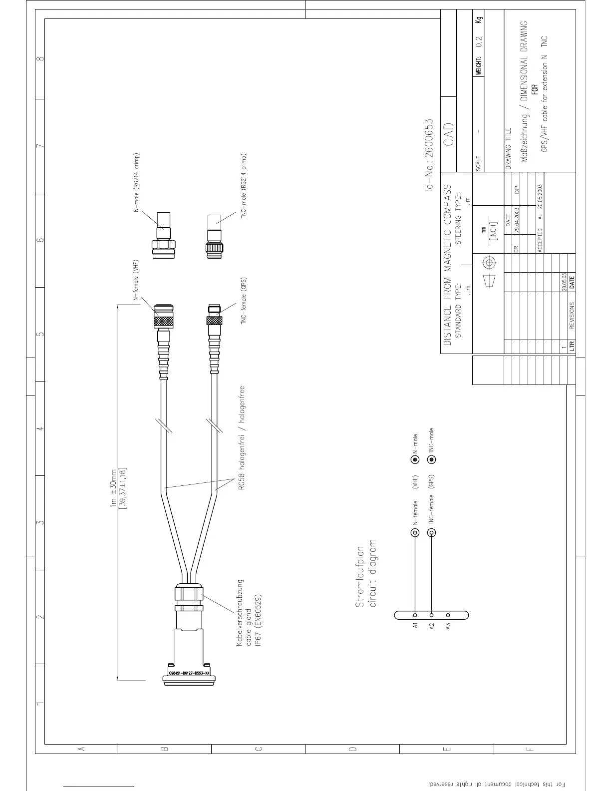 1. Mating connectors for cable are A1-03-0339 (TNC Male) and