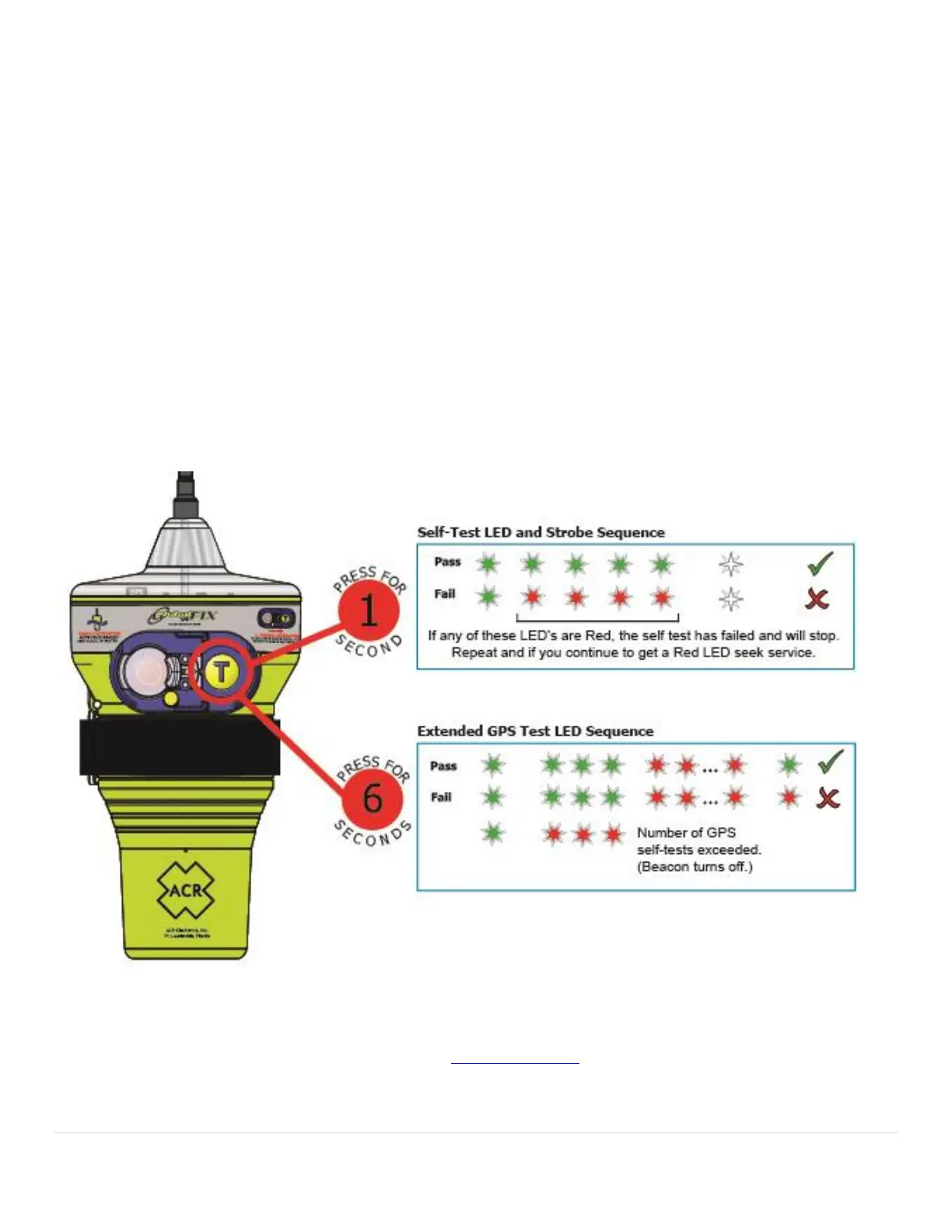 and beep will indicate that the extended GPS test was successful. If the beacon is unsuccessful in acquiring a good GPS