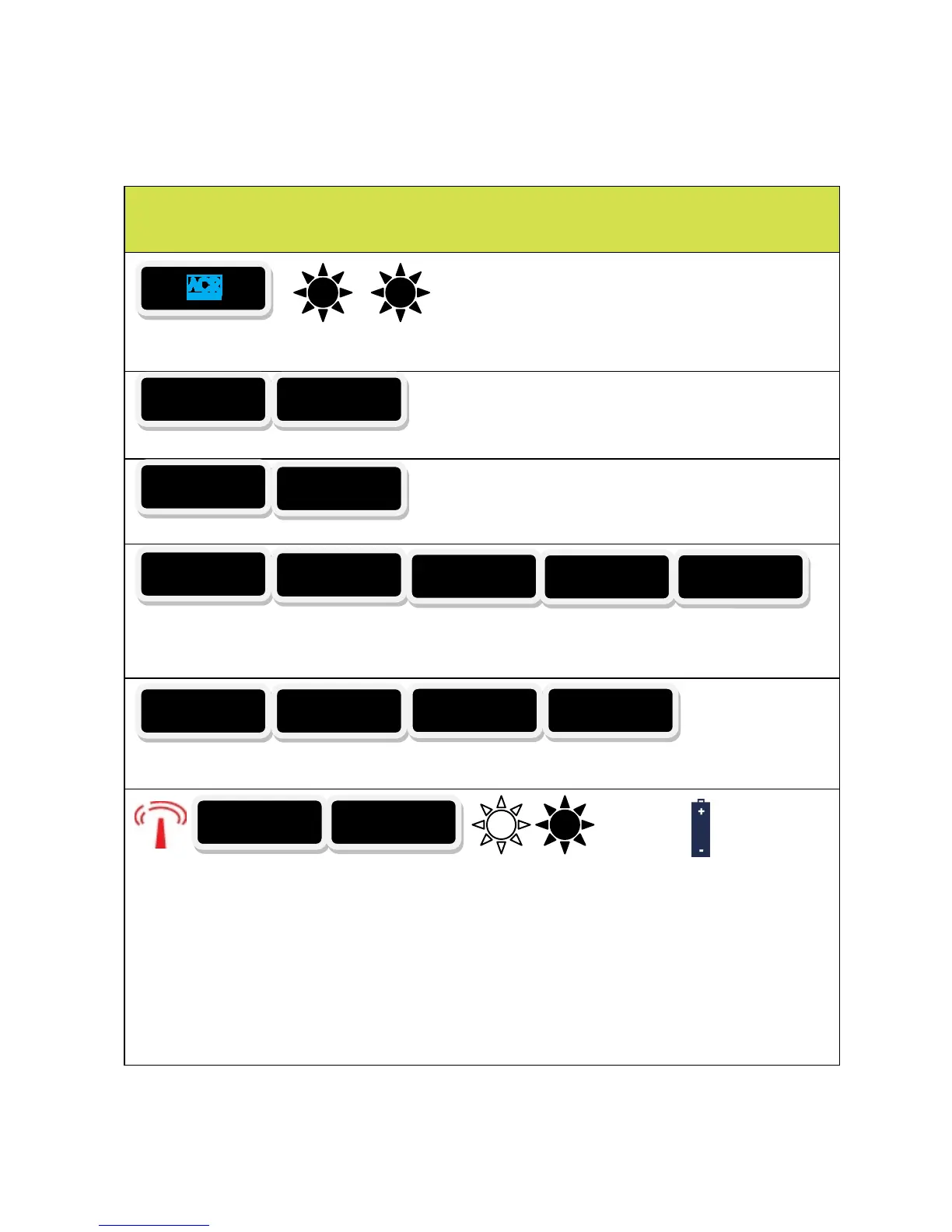 The following chart describes the audio-visual feedback the beacon provides