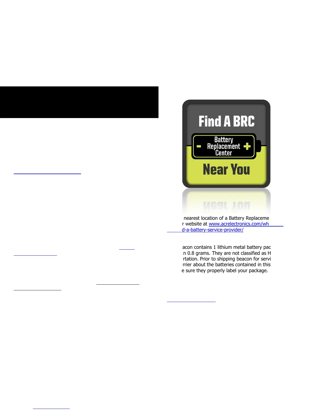 transportation. Prior to shipping beacon for service, alert