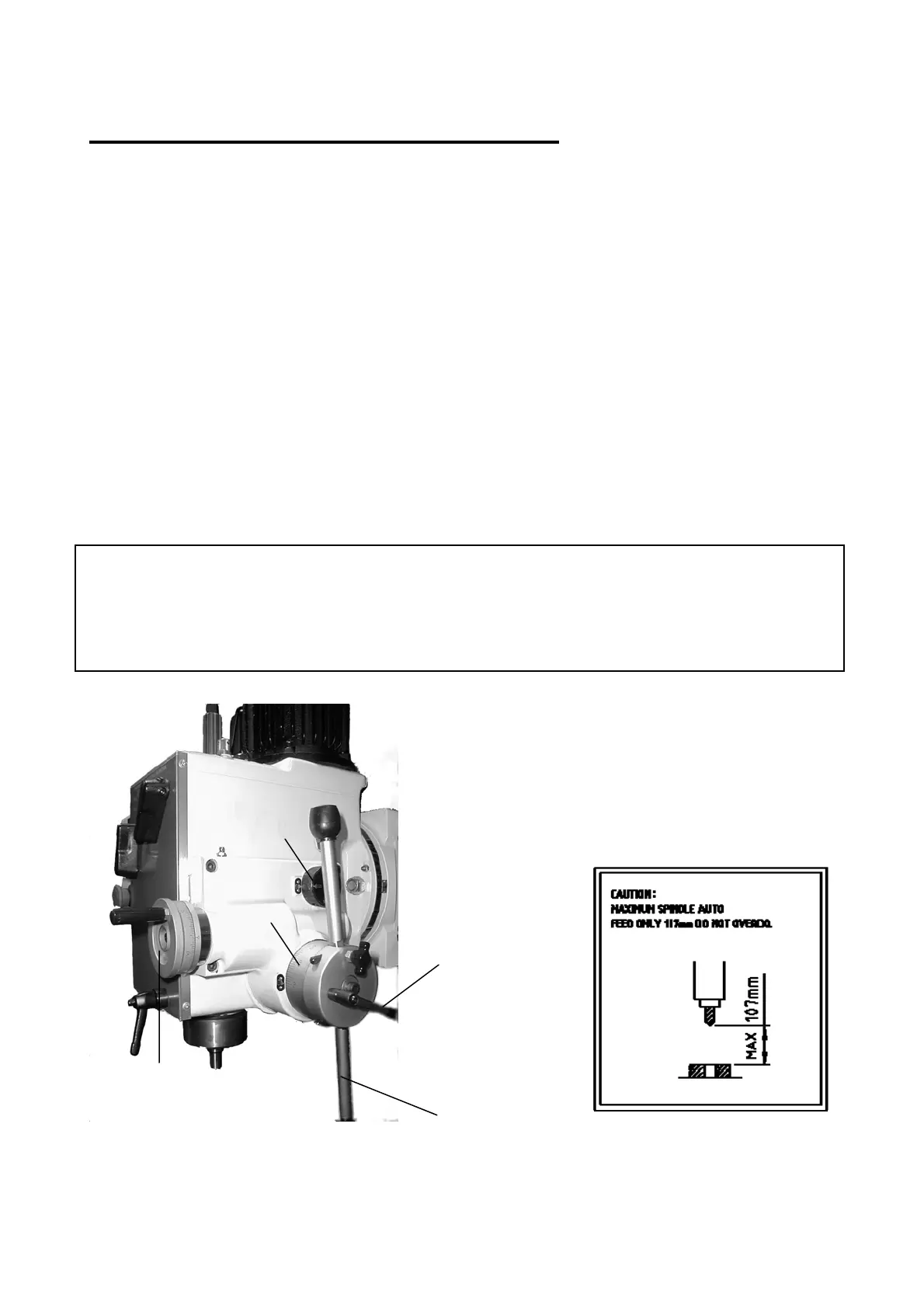 CAUTION: The maximum spindle spindle for power down feed is 107 mm only