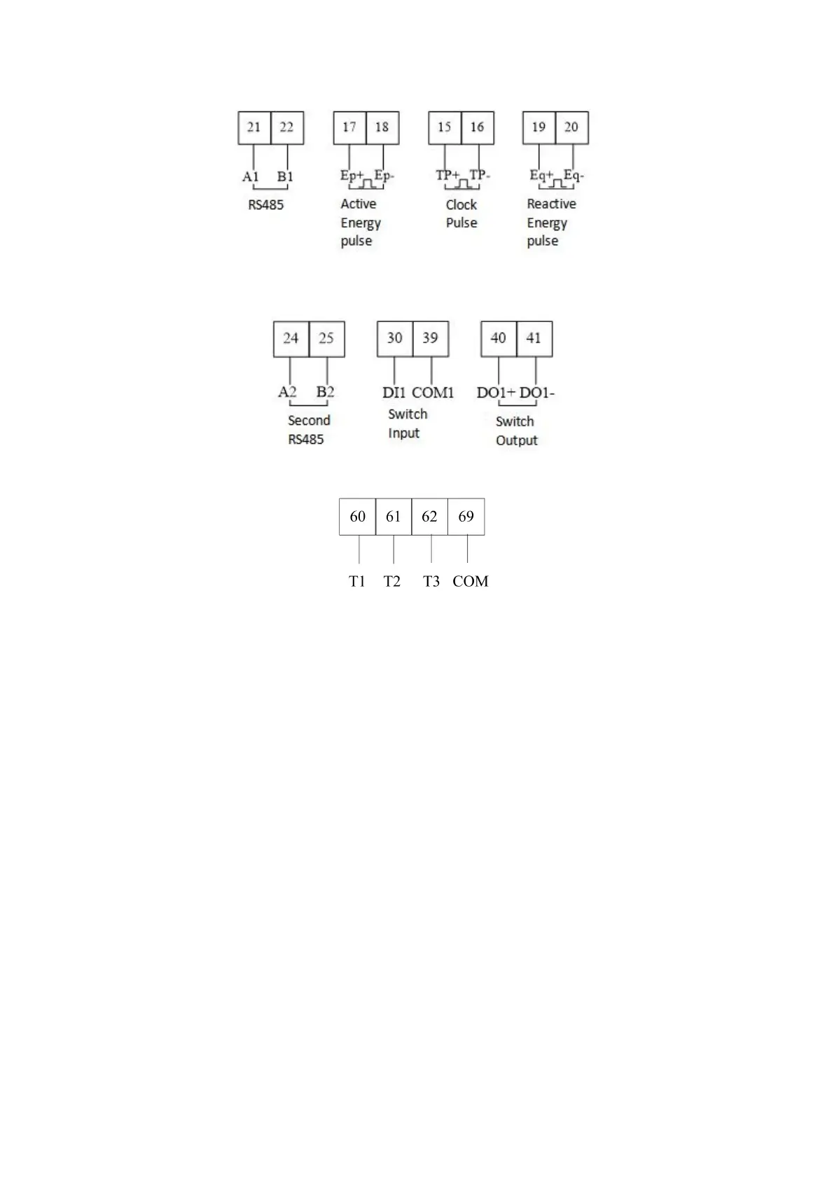 Note: (17-18) are active energy pulse, (60,61,62,69) are NTC temperature measurement port,