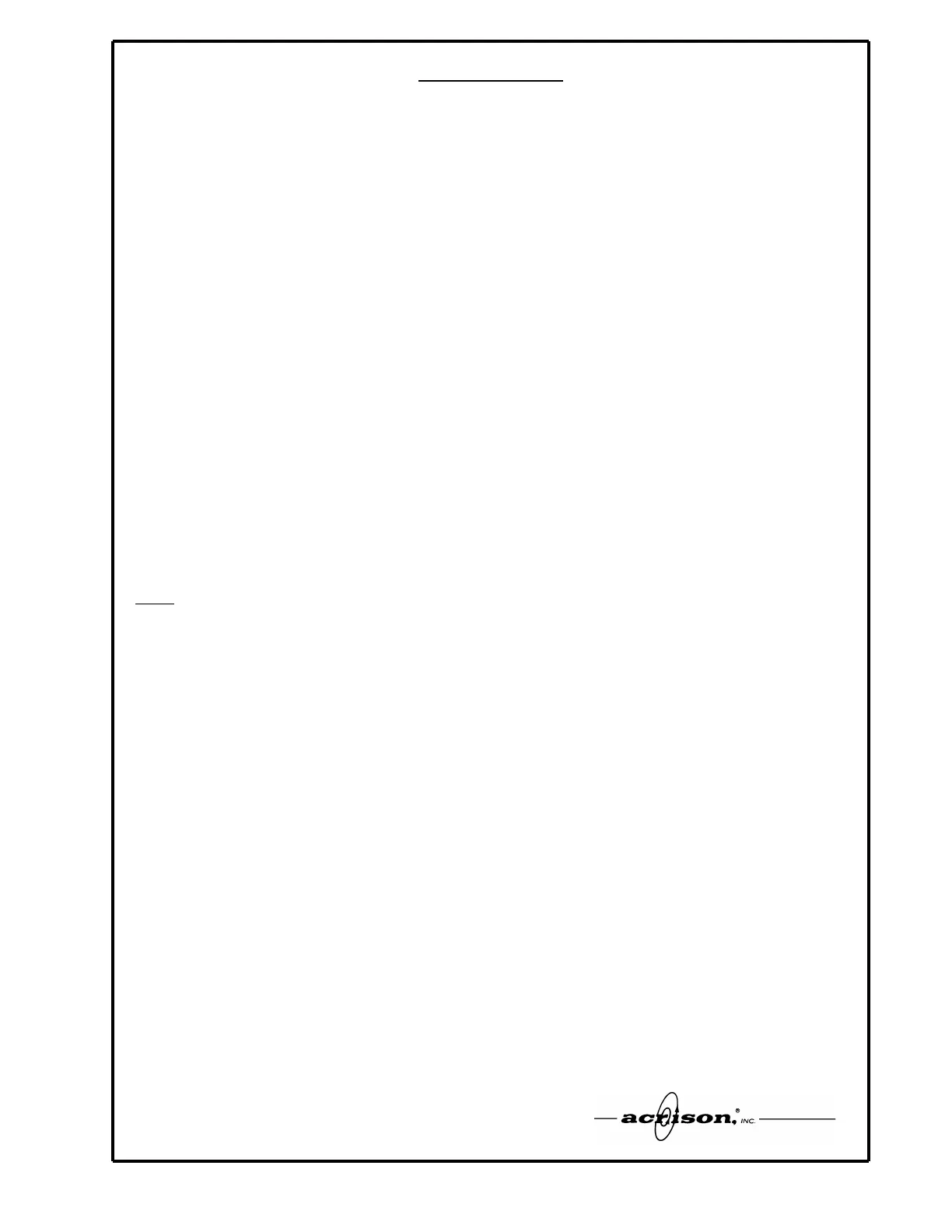 ACRISON, INC., (hereinafter referred to as ACRISON) warrants the equipment (complete new equipment) to be