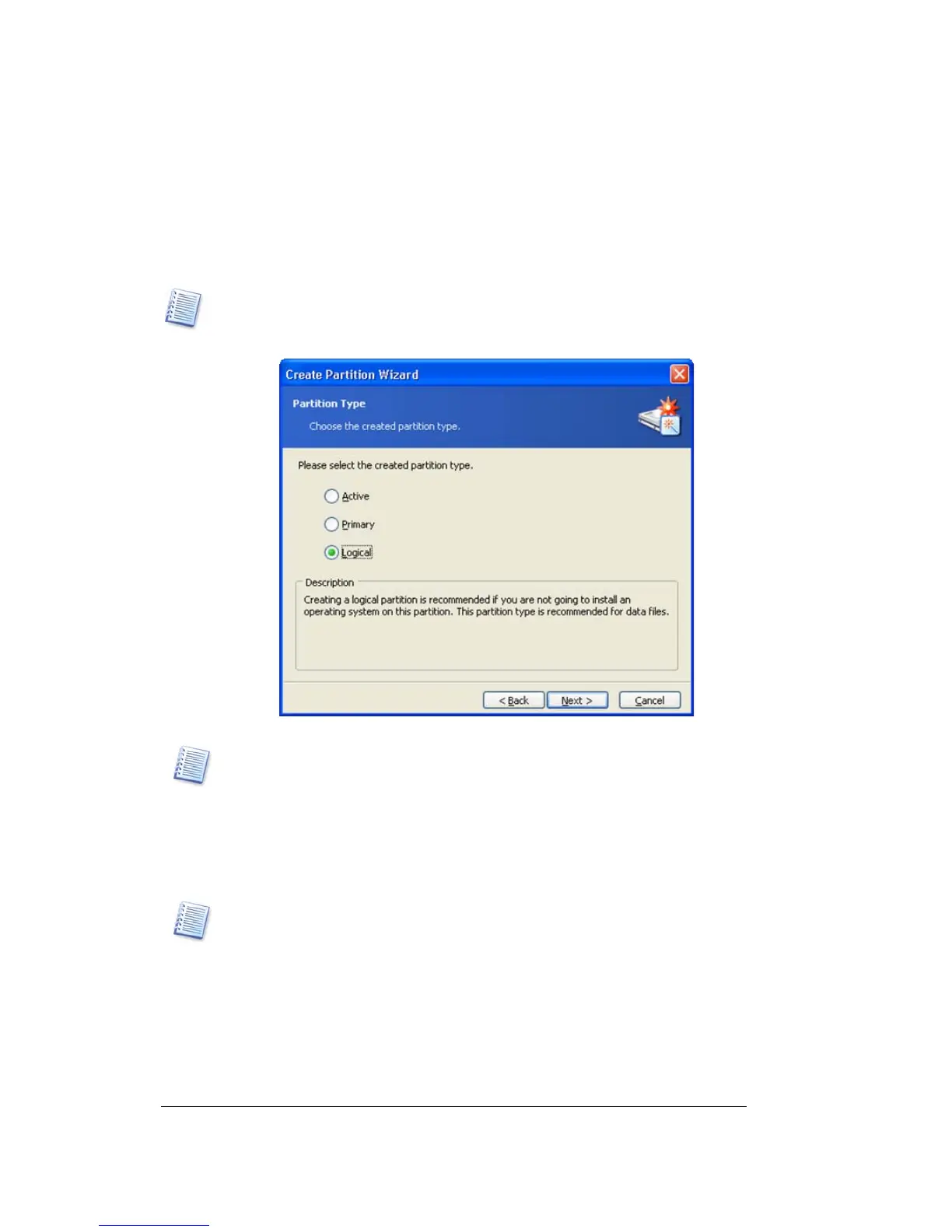 4. On the next wizard page, select partition type — Active (Active Primary), Primary or
