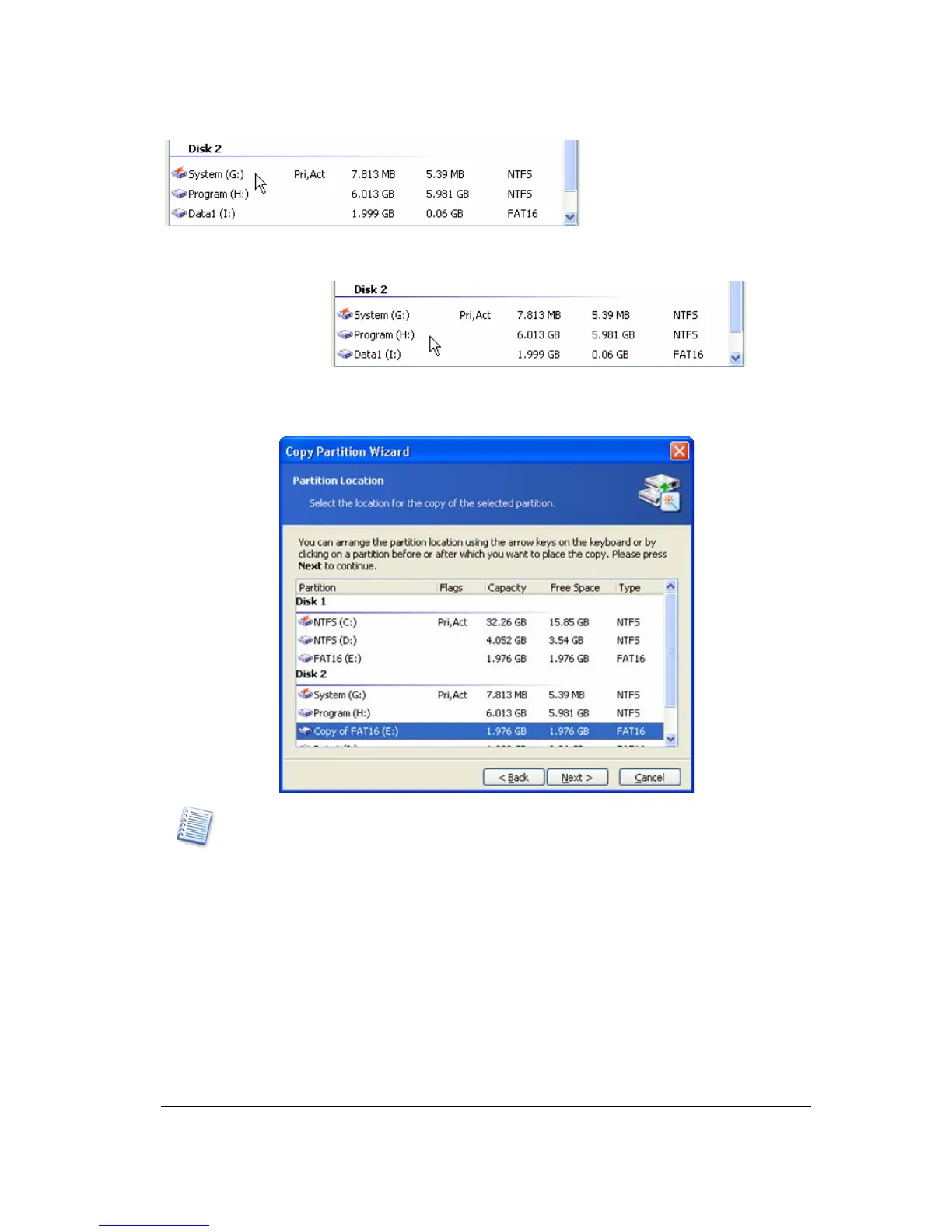 The copy will be located after the PROGRAM(H:) partition in the figure below.