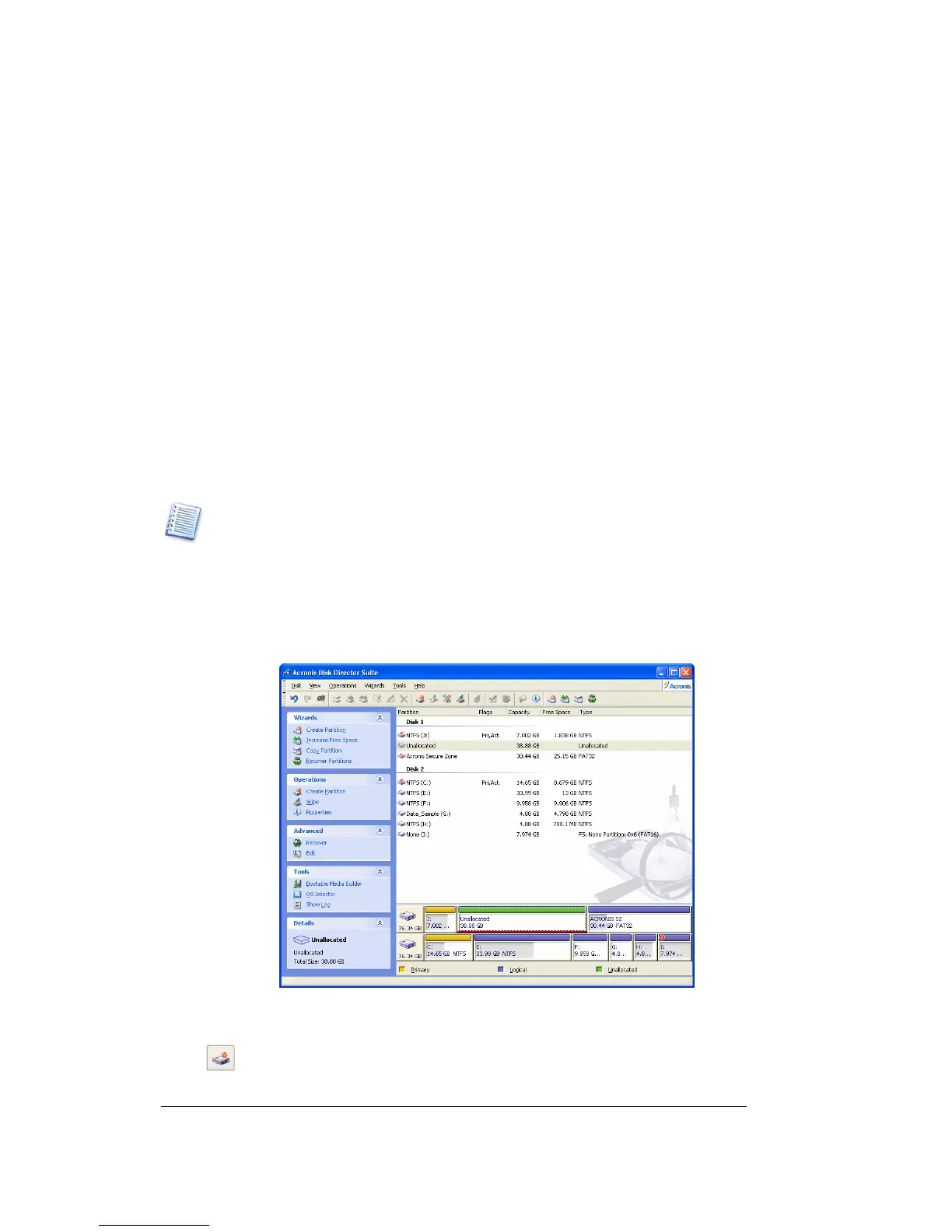 2. Select Disk Æ Create partition or a similar item in the Operations sidebar list, or click