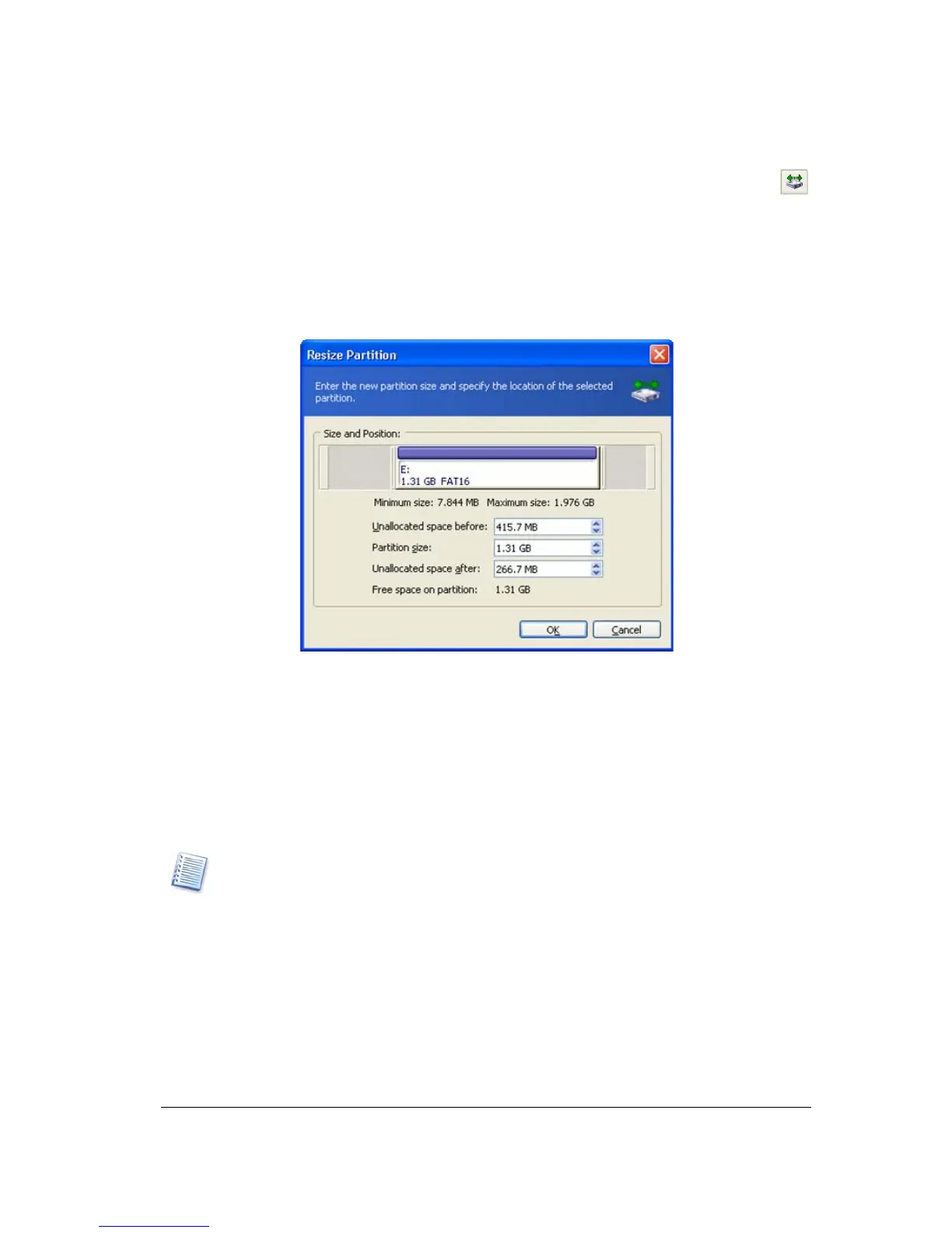 3. Resize the partition in the Resize Partition window: