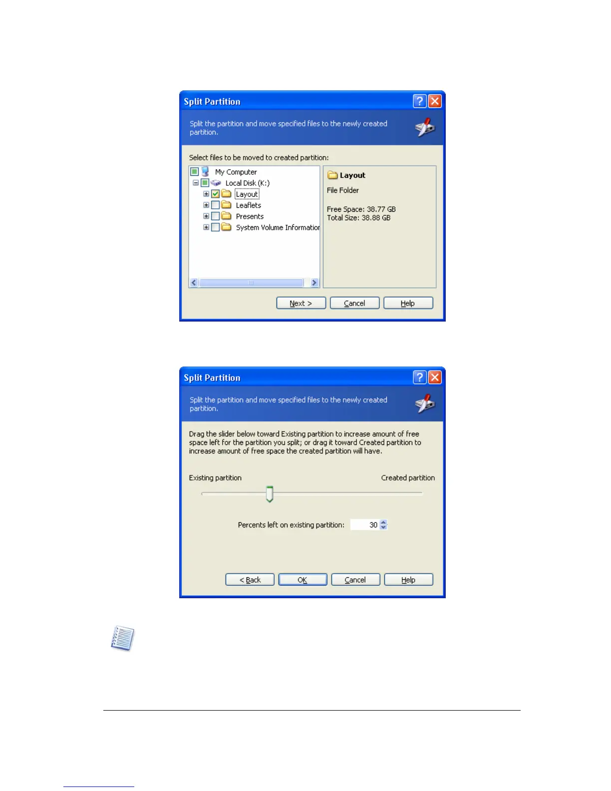 the folders being moved to the new partition, and will add the specified free space share