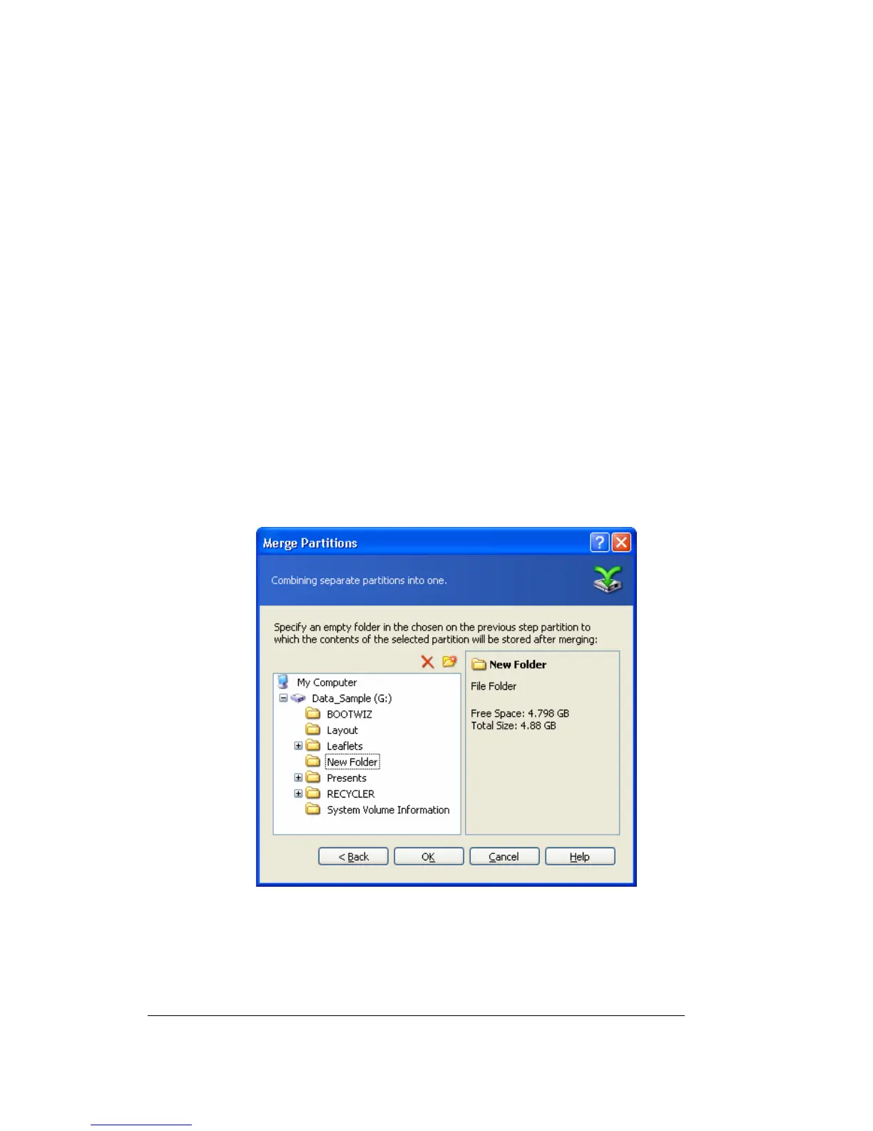 4. Select a folder on the target partition to which the data from the merged partition