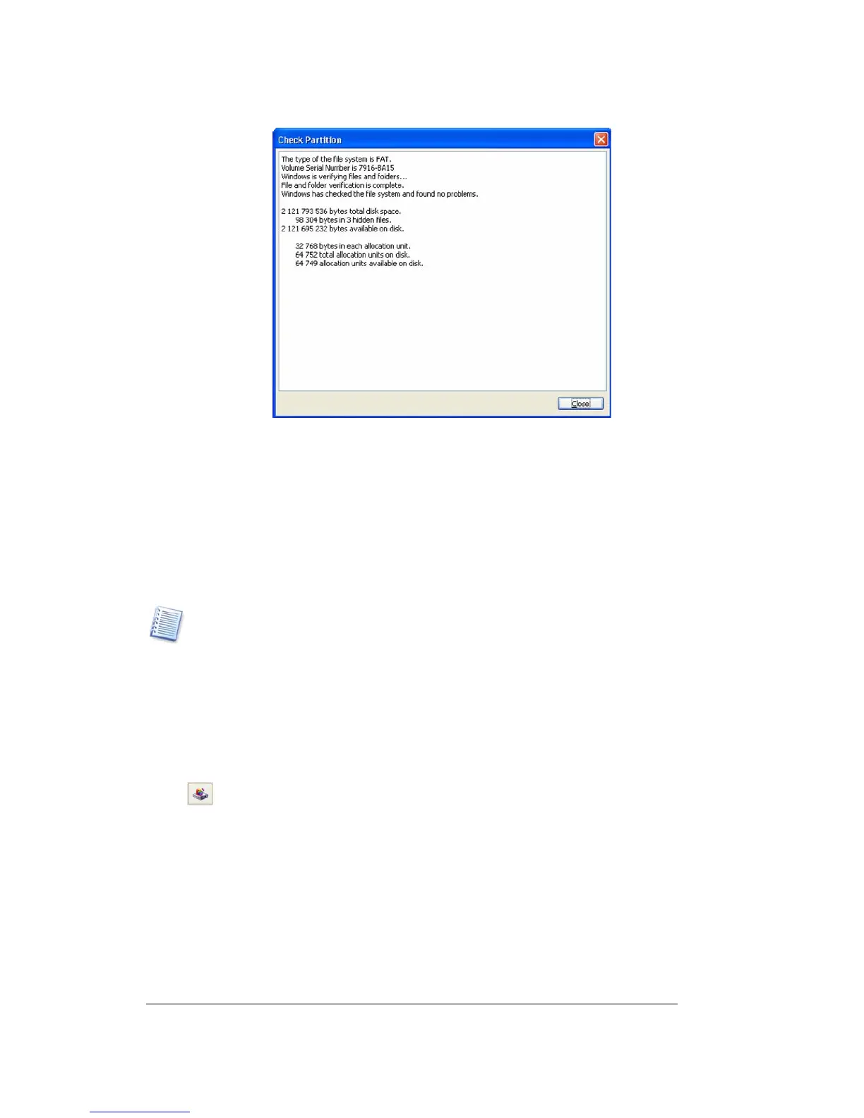 Partition check results window