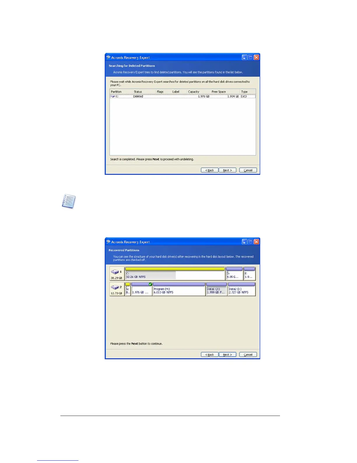 Note that you do not have to select partitions for recovery in the automatic mode. Acronis