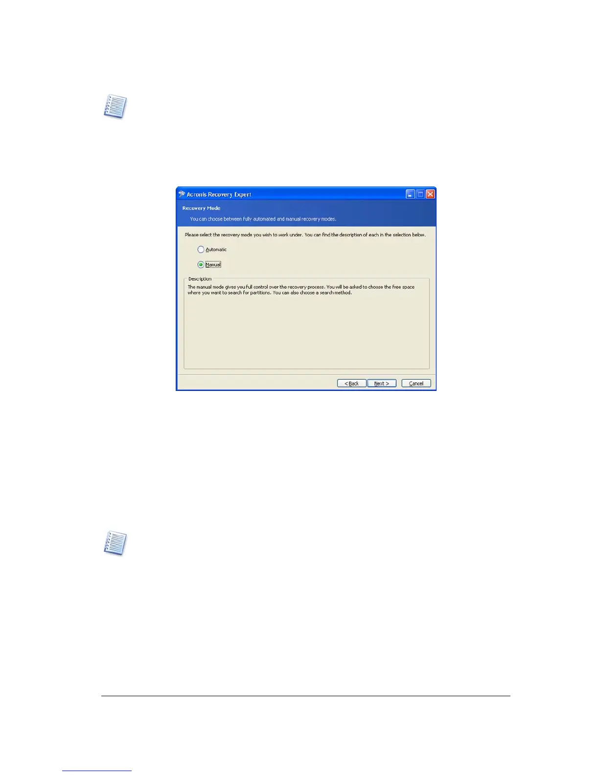 Set the switch to Manual in the Recovery mode window to select the manual recovery