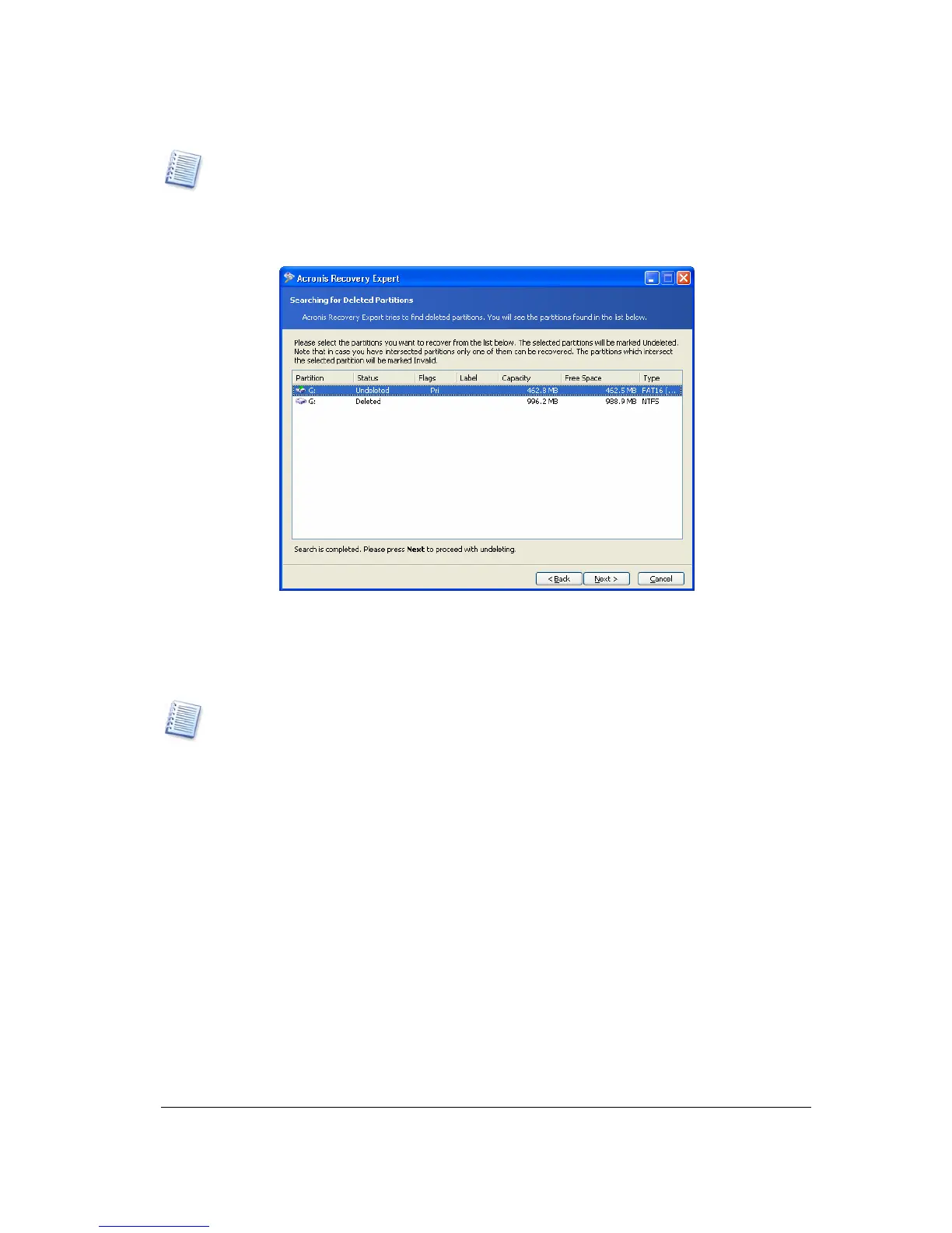 If you exit Acronis Disk Director Server without confirming a partition recovery operation, it