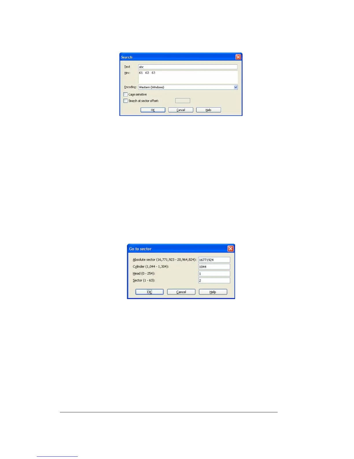 You can go to the necessary sector according to its absolute offset by selecting the Go