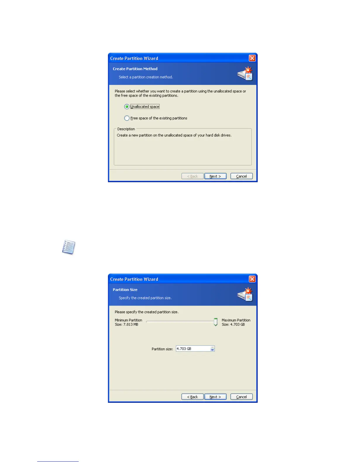 2. If you want to create a partition using unallocated disk space: