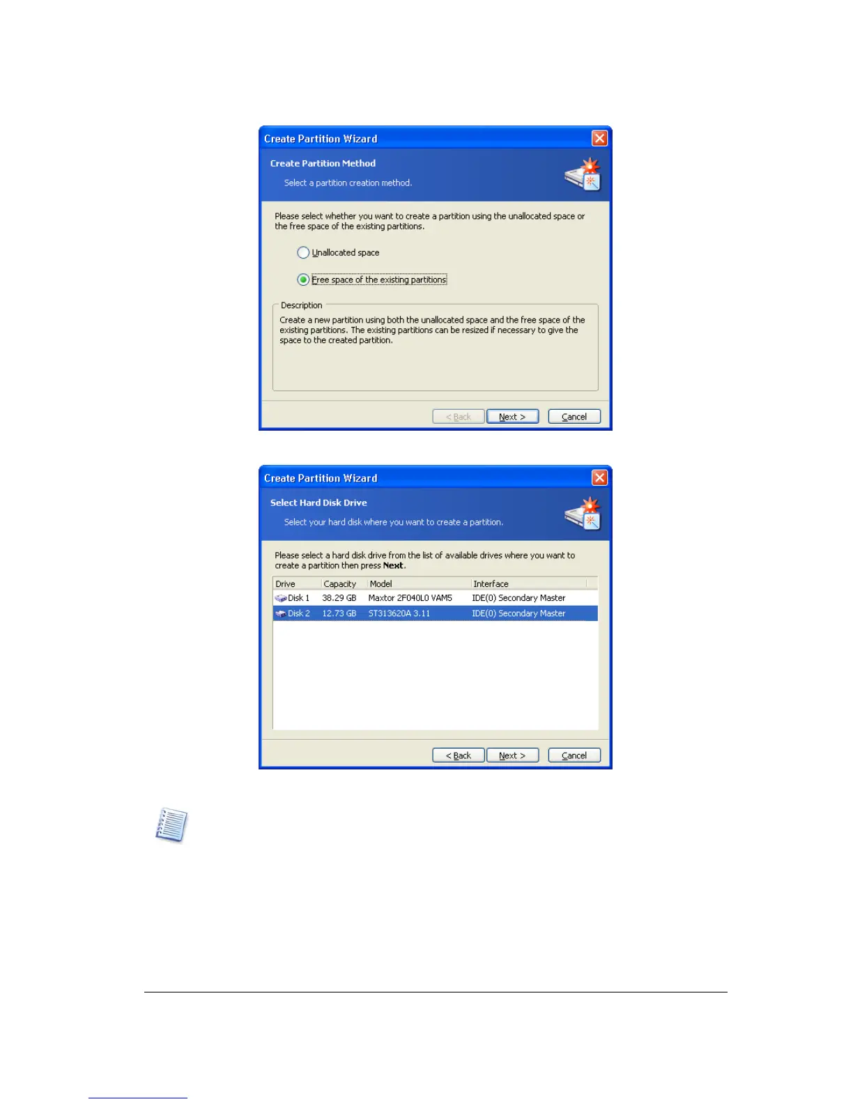 2. On the Select Hard Disk Drive wizard page, select a disk on which to create a