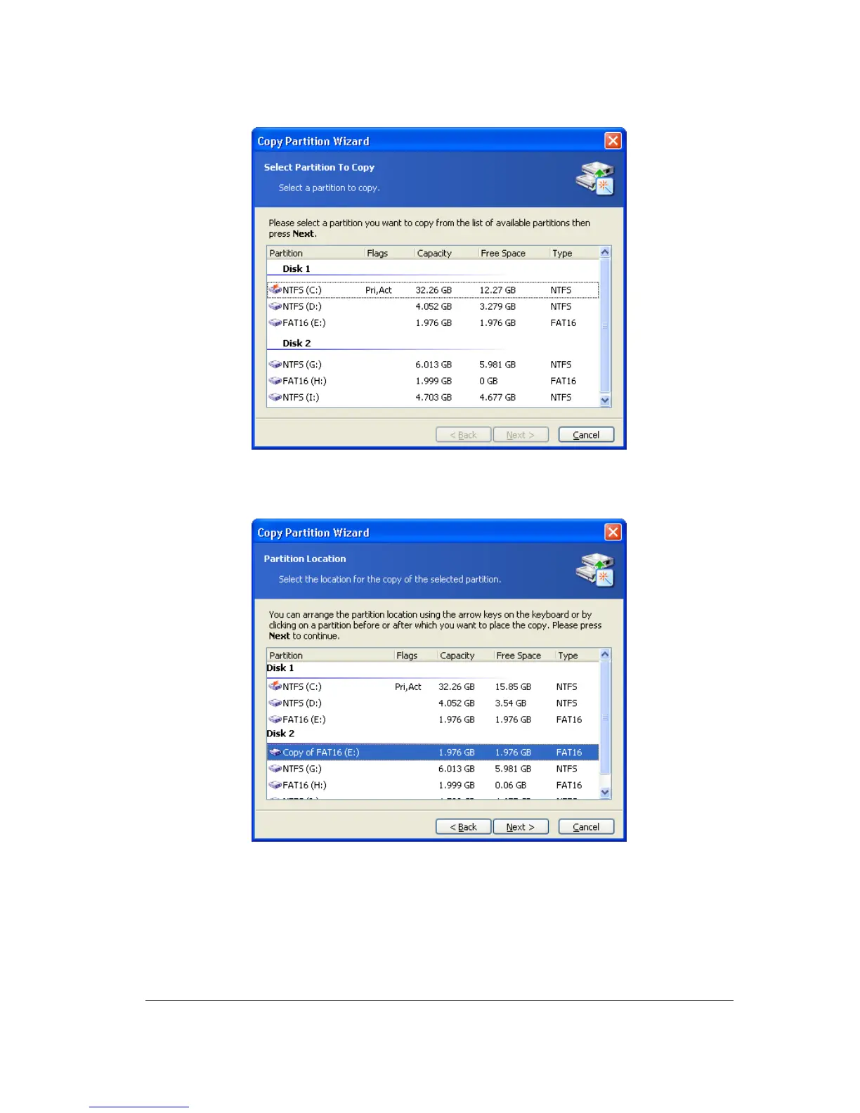 On the next Partition Location wizard page, a record of copied partition parameters