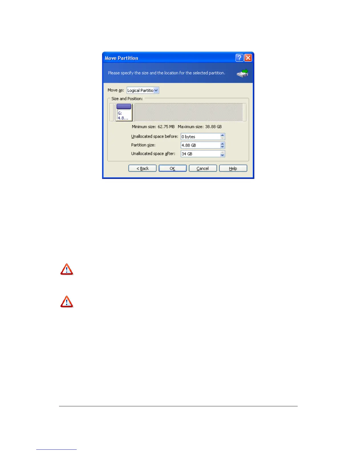 5.1.4 Resizing and/or moving a partition