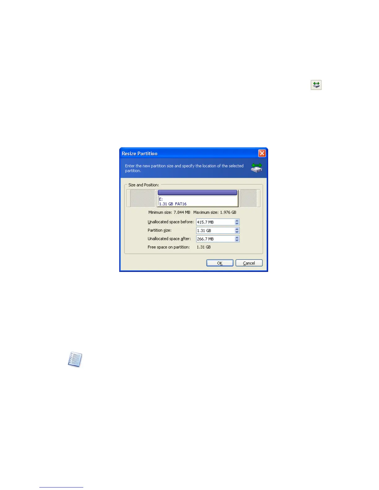 3. Resize the partition in the Resize Partition window: