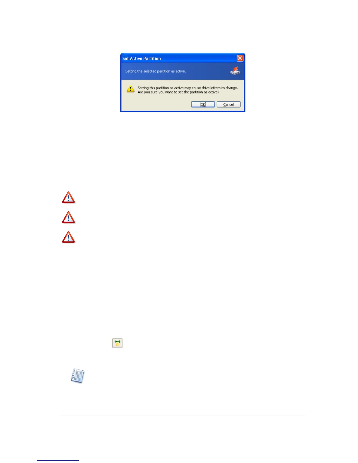 3. By clicking OK in the Set Active Partition window, you'll add the pending operation of