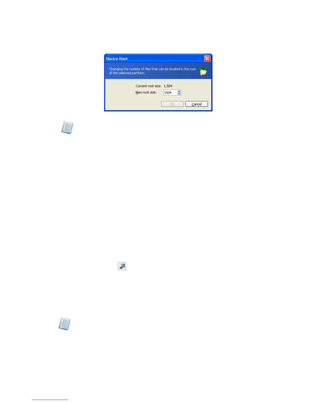 3. Enter the new root size (a number of elements) in the Resize Root window.