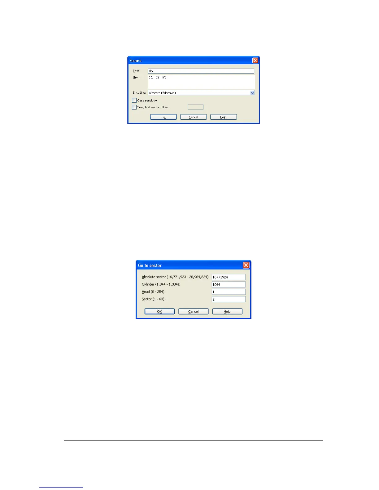 You can go to the necessary sector according to its absolute offset by selecting the Go