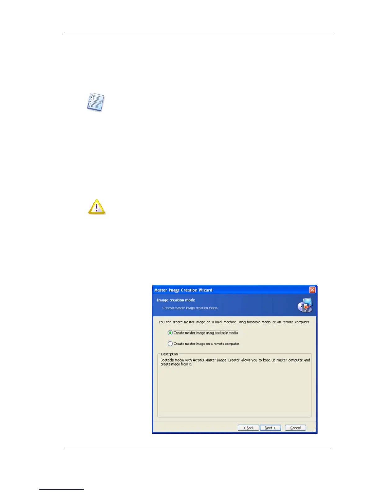 local (with bootable version of the Acronis Master Image Creator) and remote