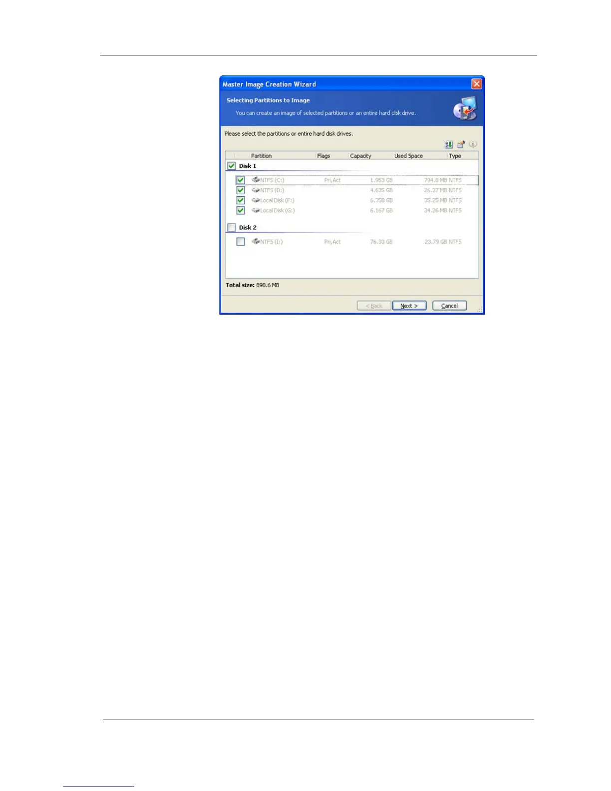 Having selected disks, click Next. Note that this button is disabled if no disks
