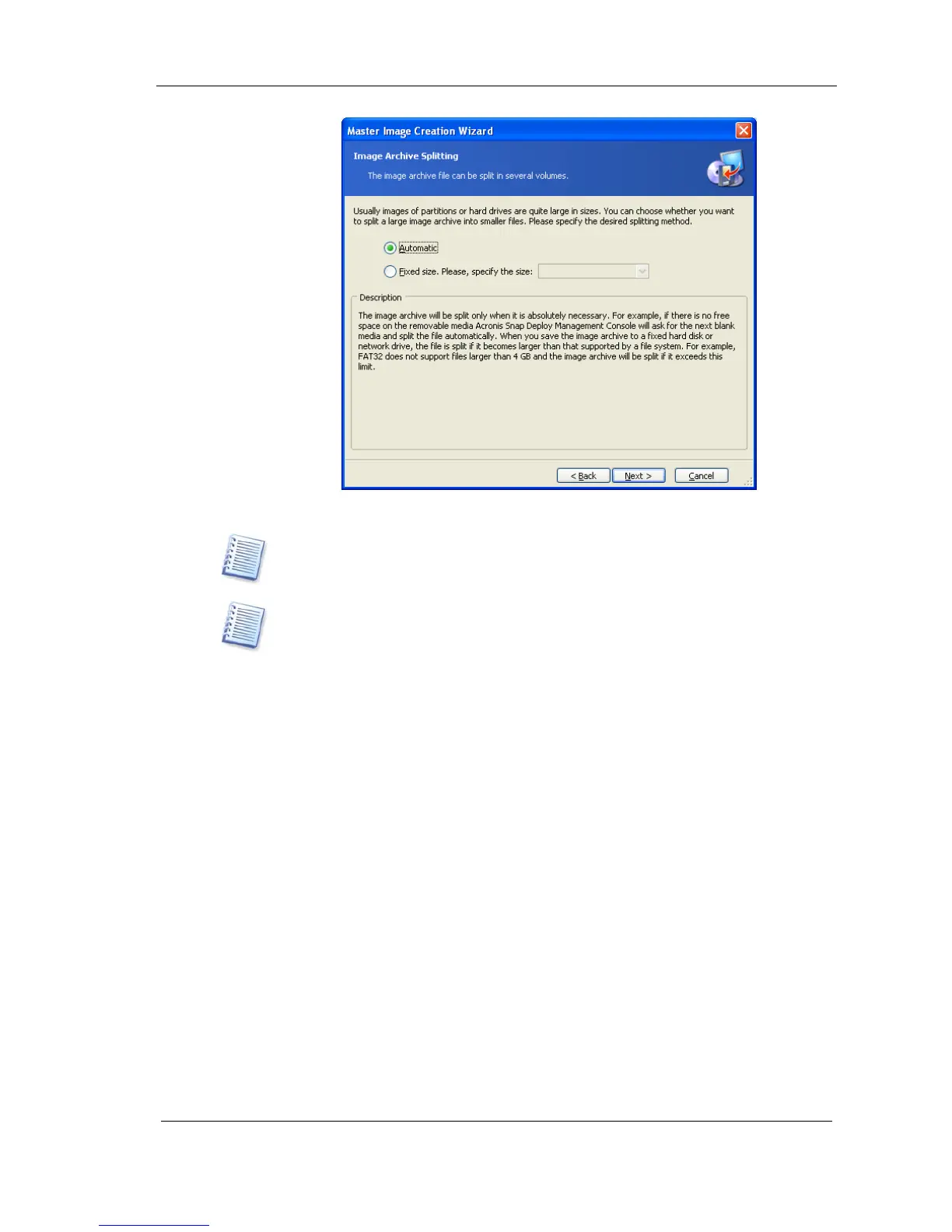 image file might easily exceed this limit. In this case, Acronis Master Image Creator will
