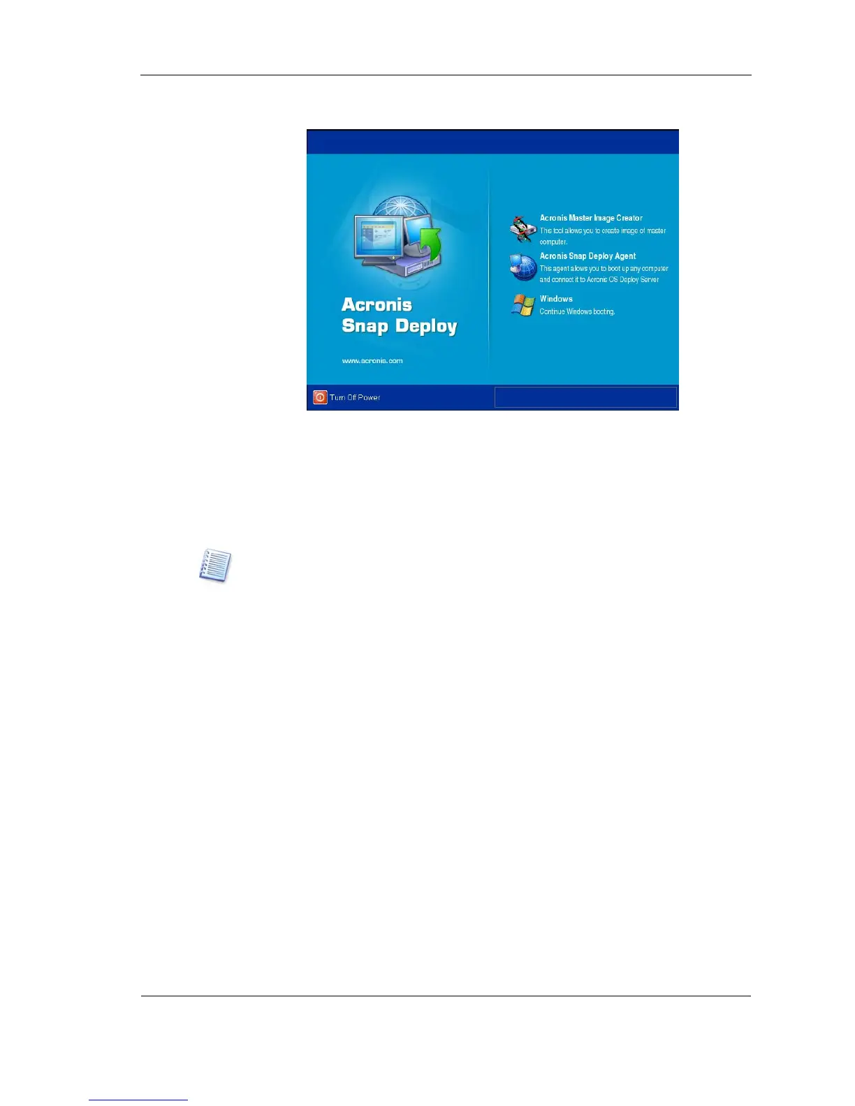Acronis PXE Server allows you to boot computers with Acronis Snap Deploy