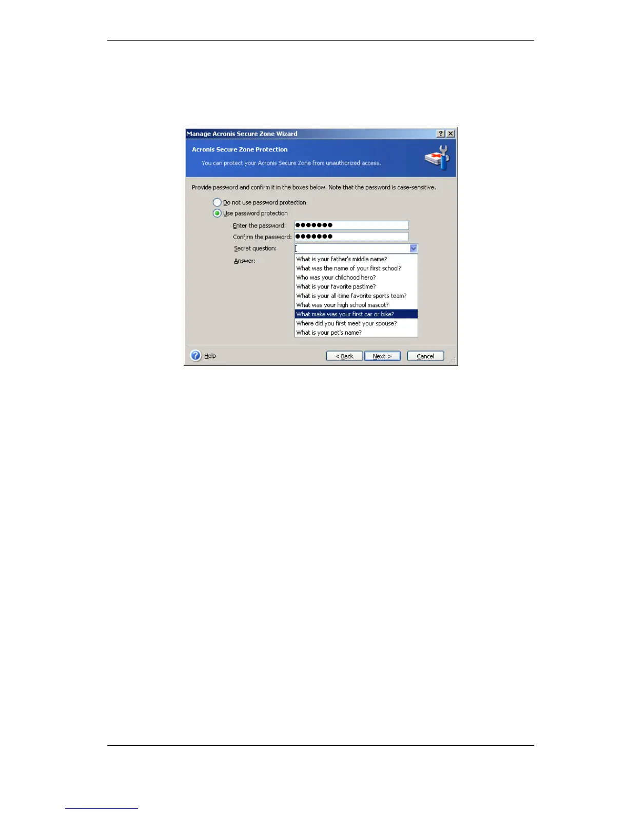 1. When prompted by the wizard, select Manage Acronis Secure Zone.