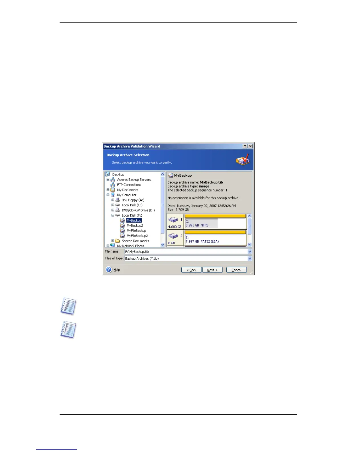 2. Select the archive to validate. If the archive is located in Acronis Secure Zone, select it