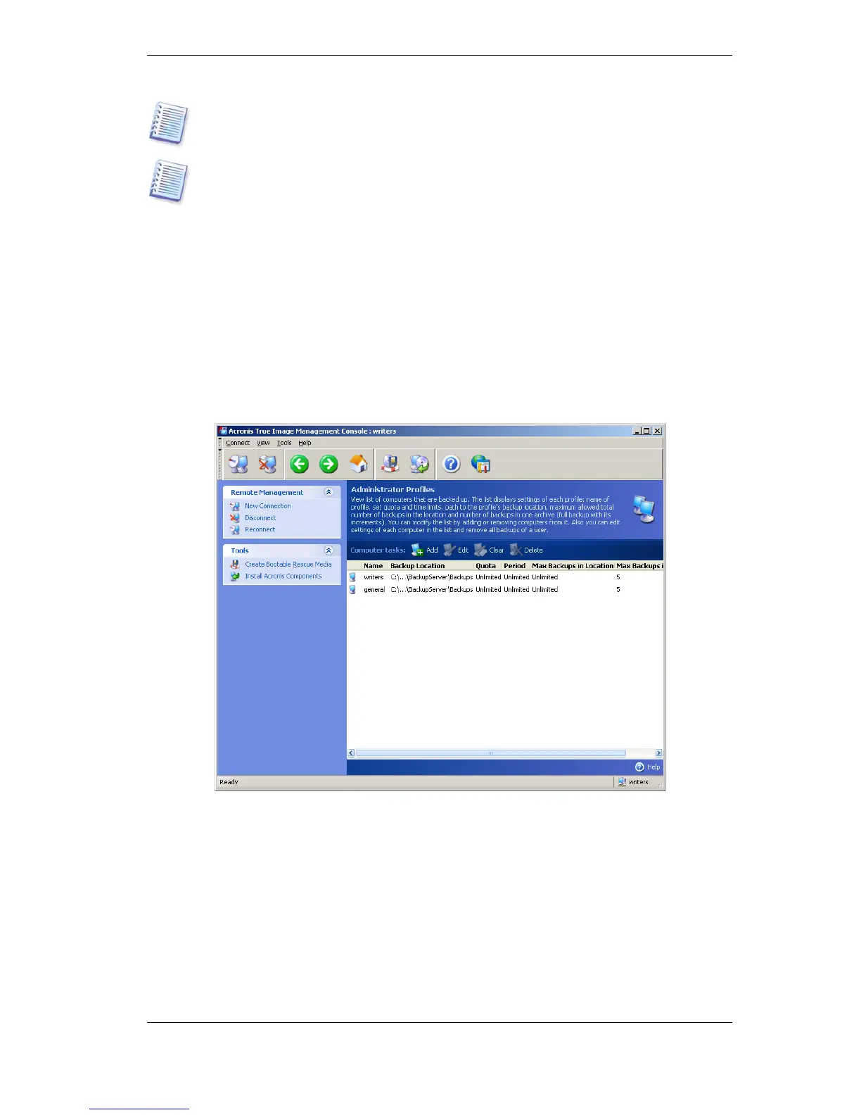 installed. Click Set up Administrator profiles -> Add, select the computer and specify