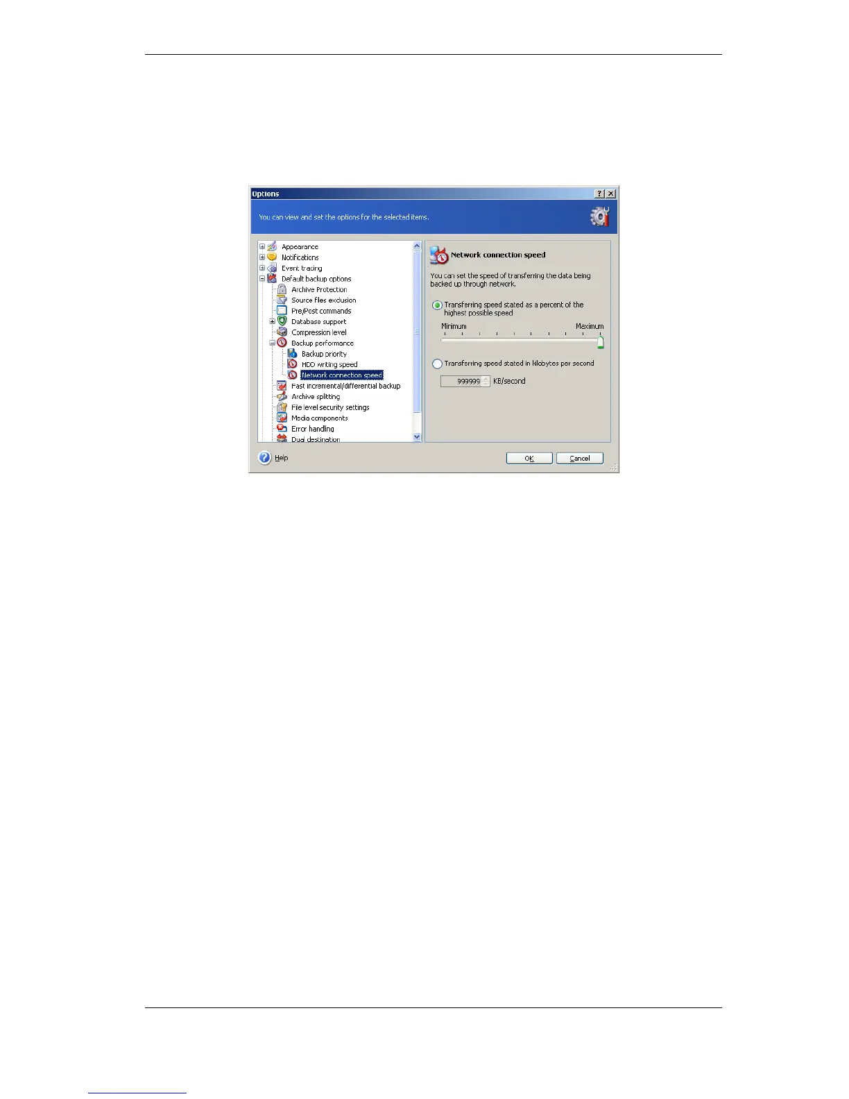 by Acronis True Image Echo Workstation. To set the desired data transfer speed, drag the