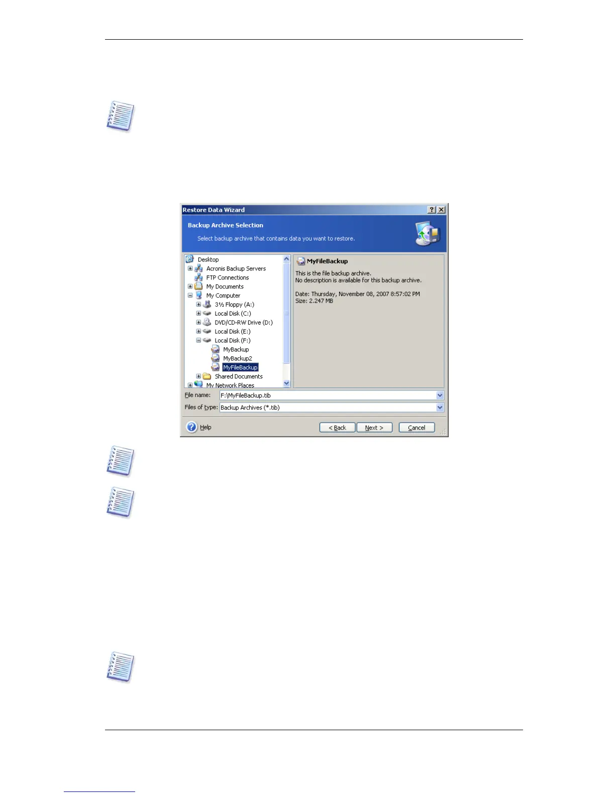 3. If the selected archive contains incremental backups, Acronis True Image Echo
