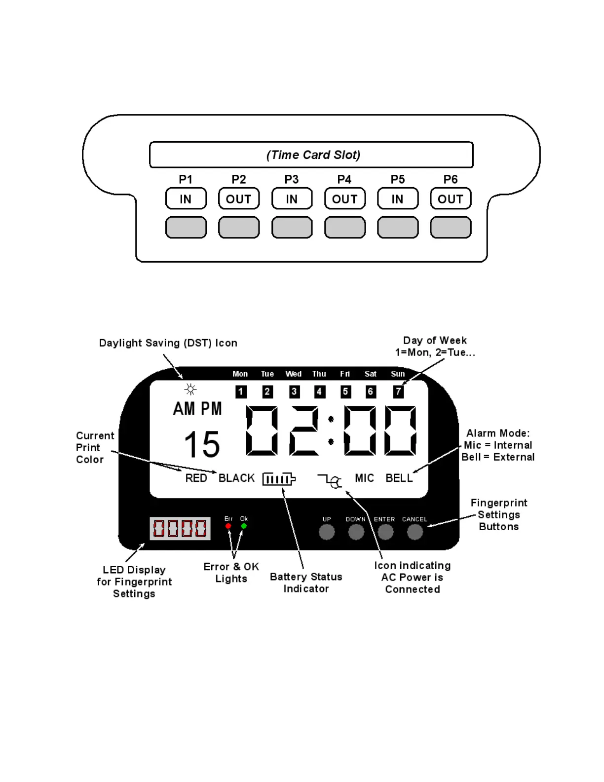 Acroprint ATR360 - Clock Overview; Top View; Front View