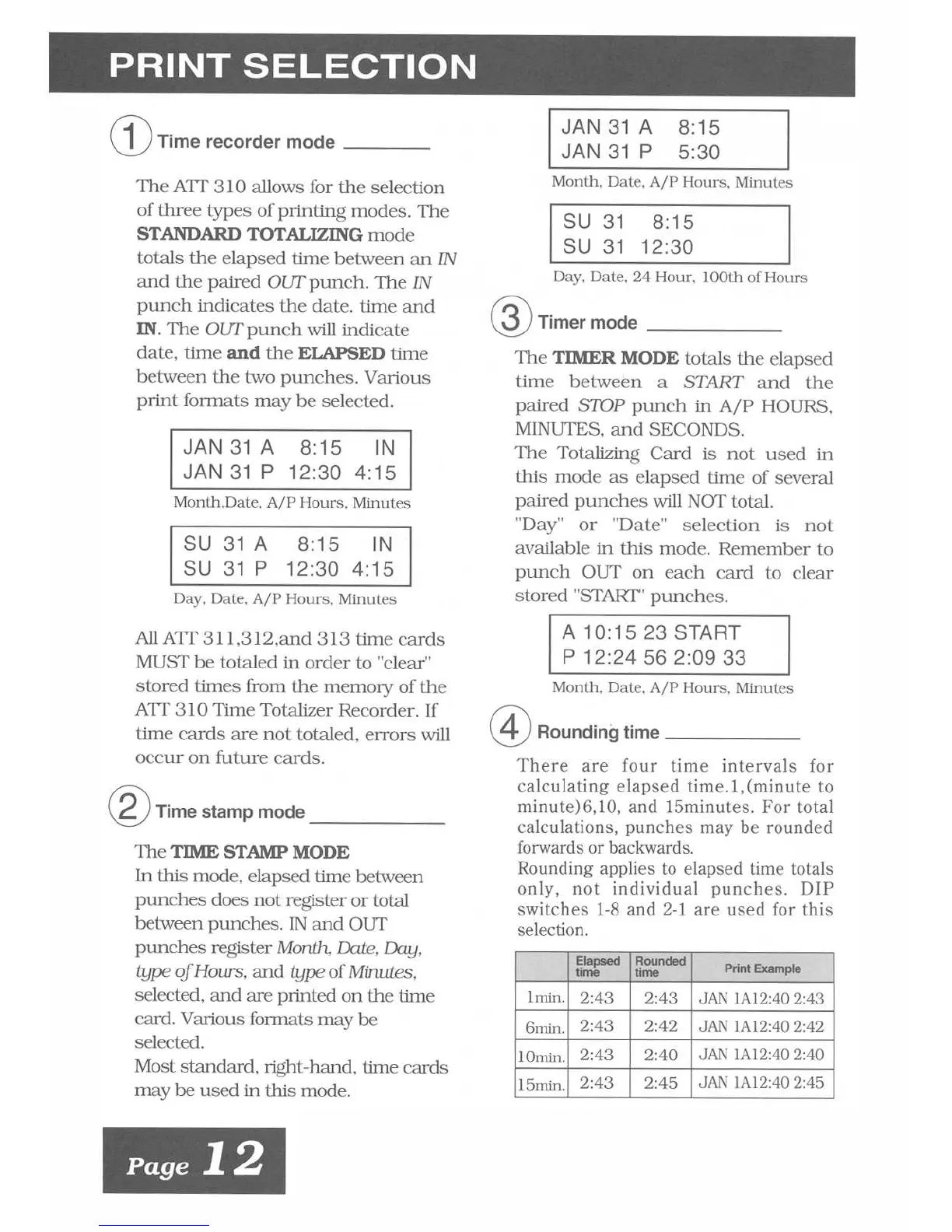 Acroprint ATT310 - Print Selection; Printing Modes Overview