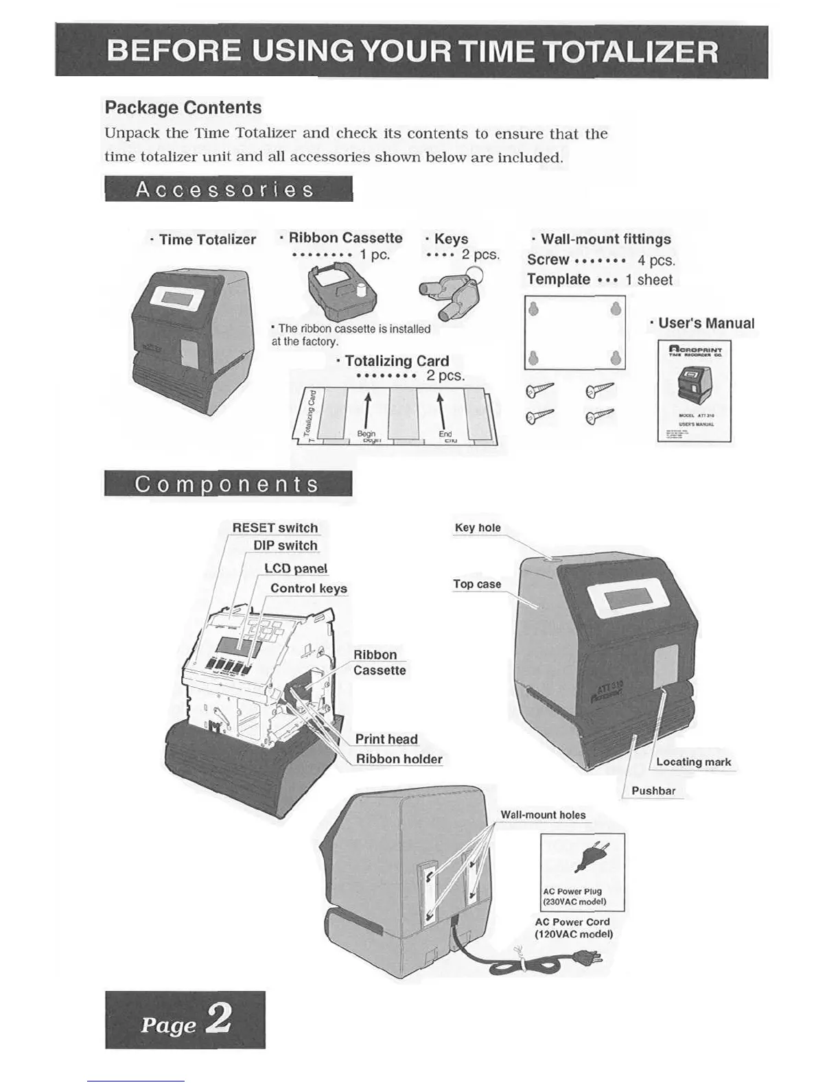 Acroprint ATT310 - Package Contents; Accessories; Product View and Parts Identification