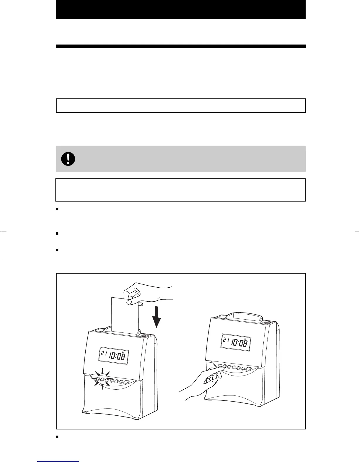 It is easy to operate the unit. Just insert a time card. To start a time card, make sure the
