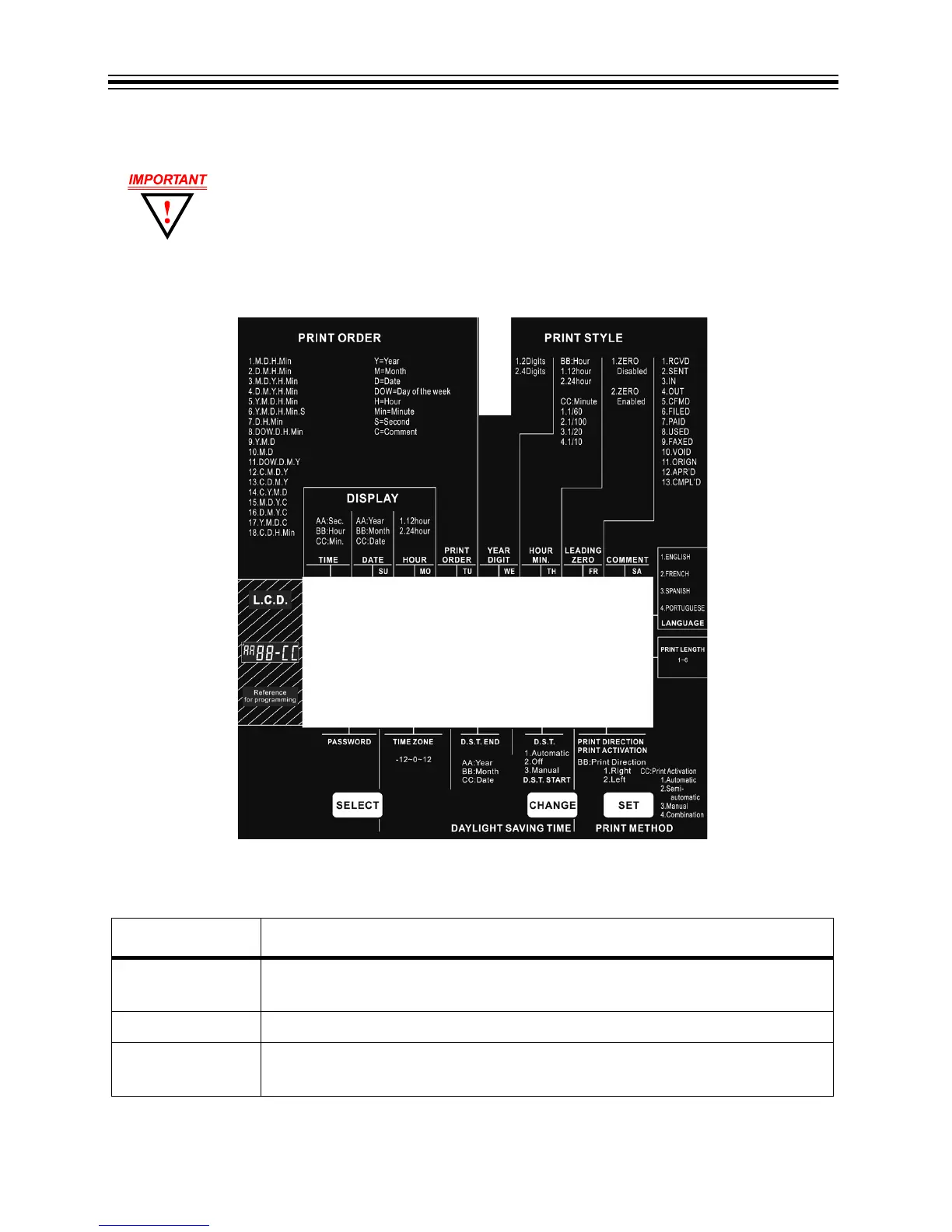 SELECT Press SELECT to choose the desired program setting mode. The selected