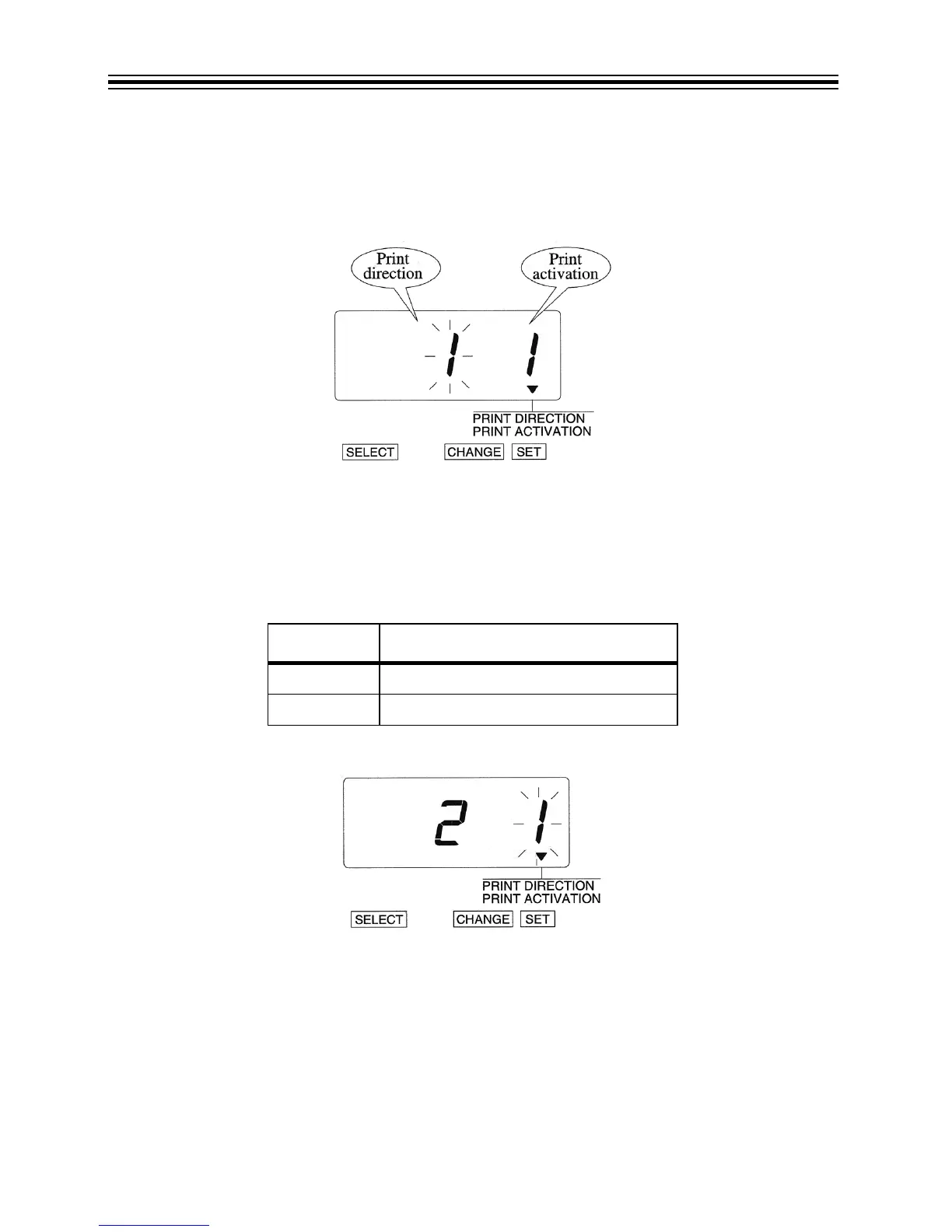3. The flashing digit changes from "Print Direction" to "Print Activation".