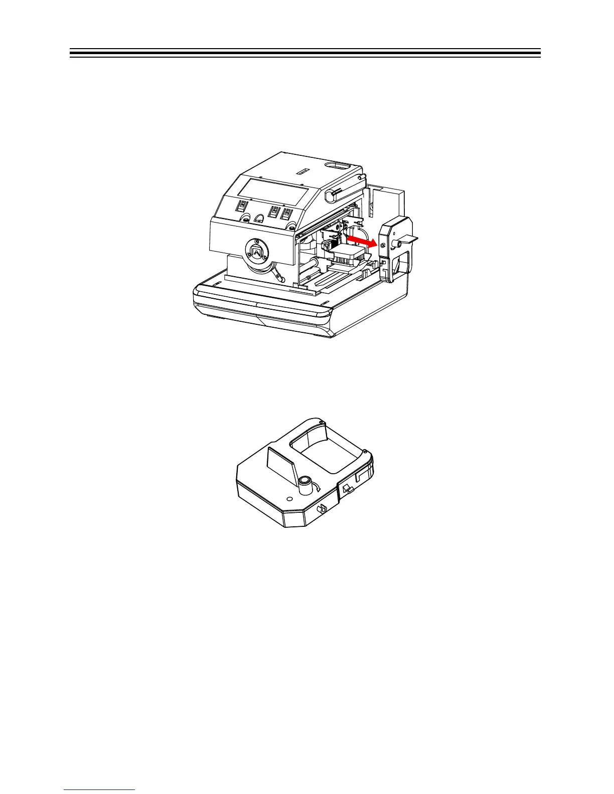 2. Hold the ribbon cassette by its tab and pull the ribbon cassette straight out to remove it.