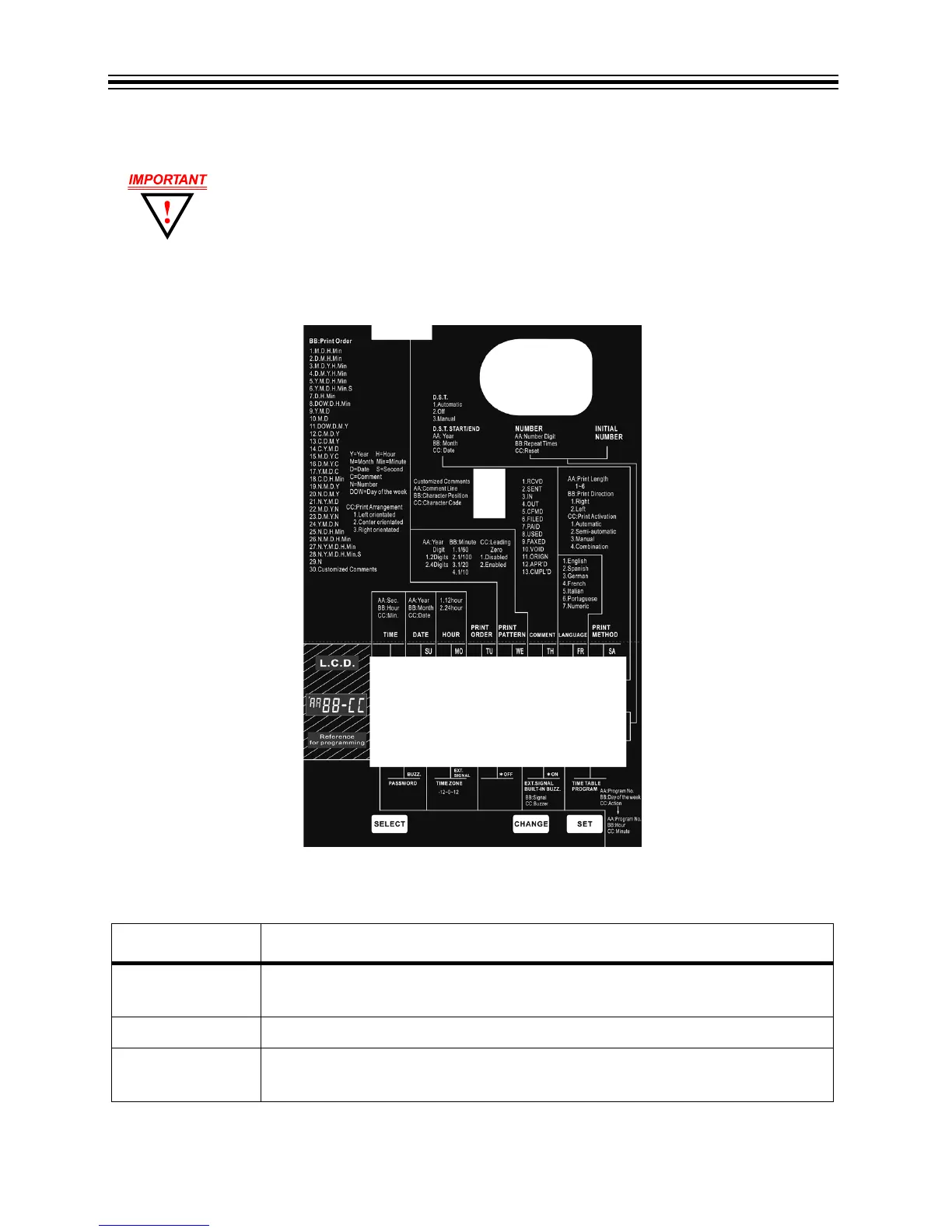 SELECT Press SELECT to choose the desired program setting mode. The selected